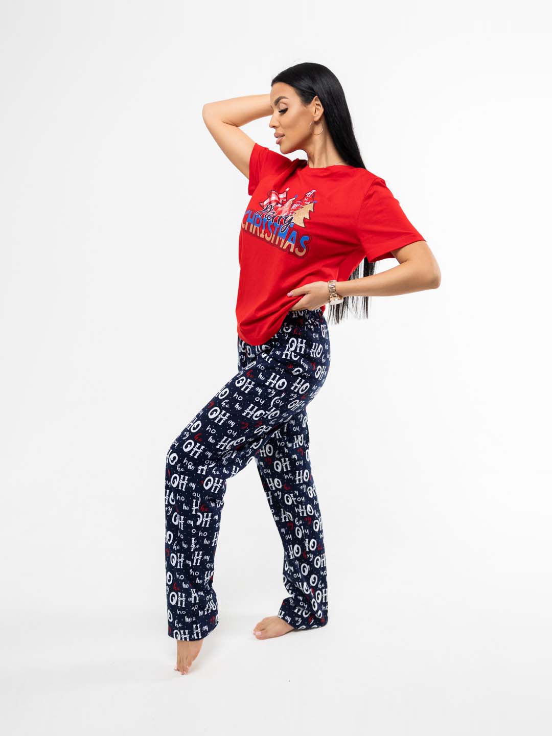 Костюм из 100% хлопка, уютный и мягкий. Милый принт не оставит никого равнодушным. Базовая футболка с яркой печатью поднимет Вам настроение. Брюки на резинке с карманами будут идеальным вариантом для дома. Костюм отлично подойдет, как для повседневной носки, так и для тематической фотосессии.