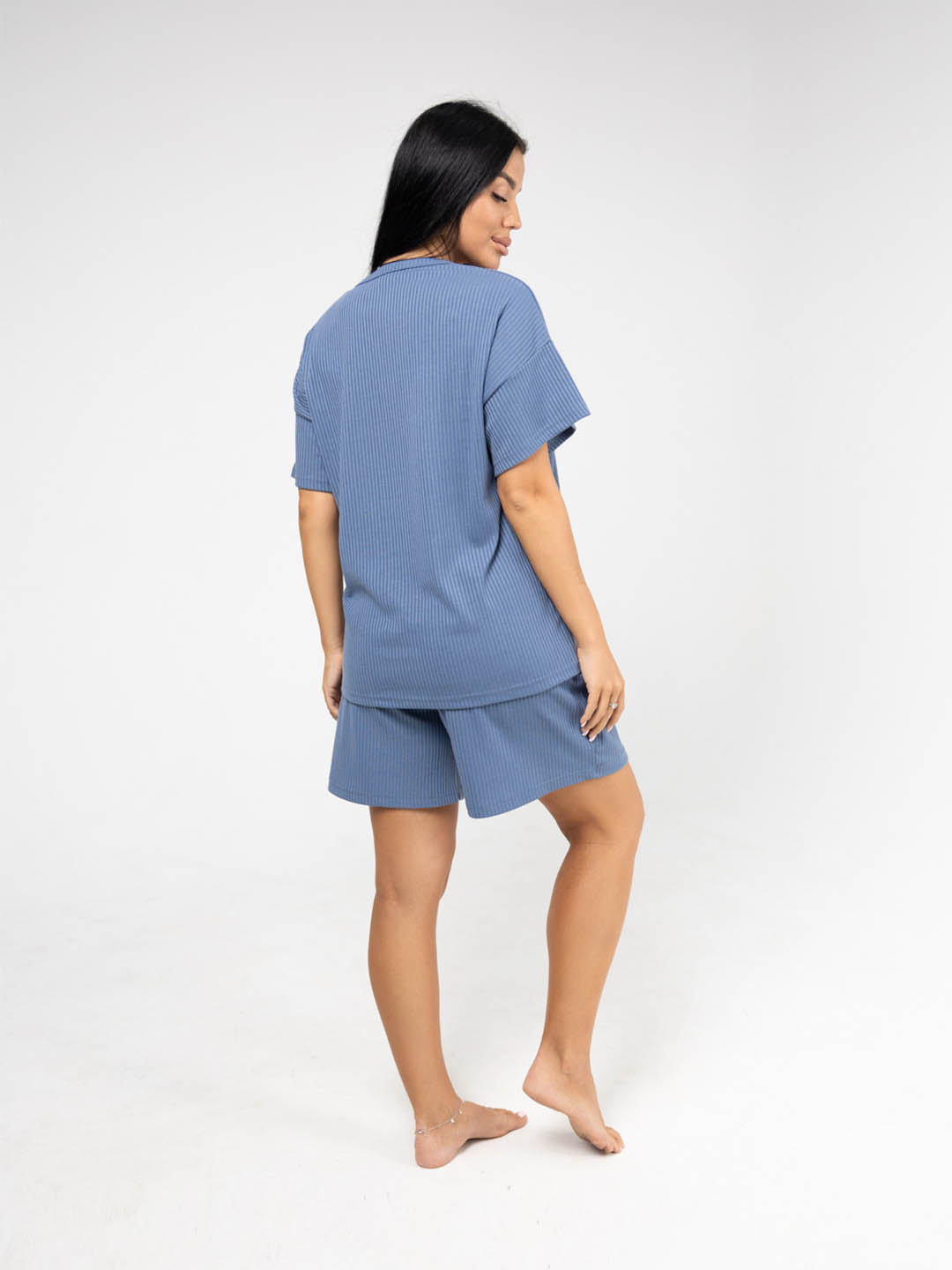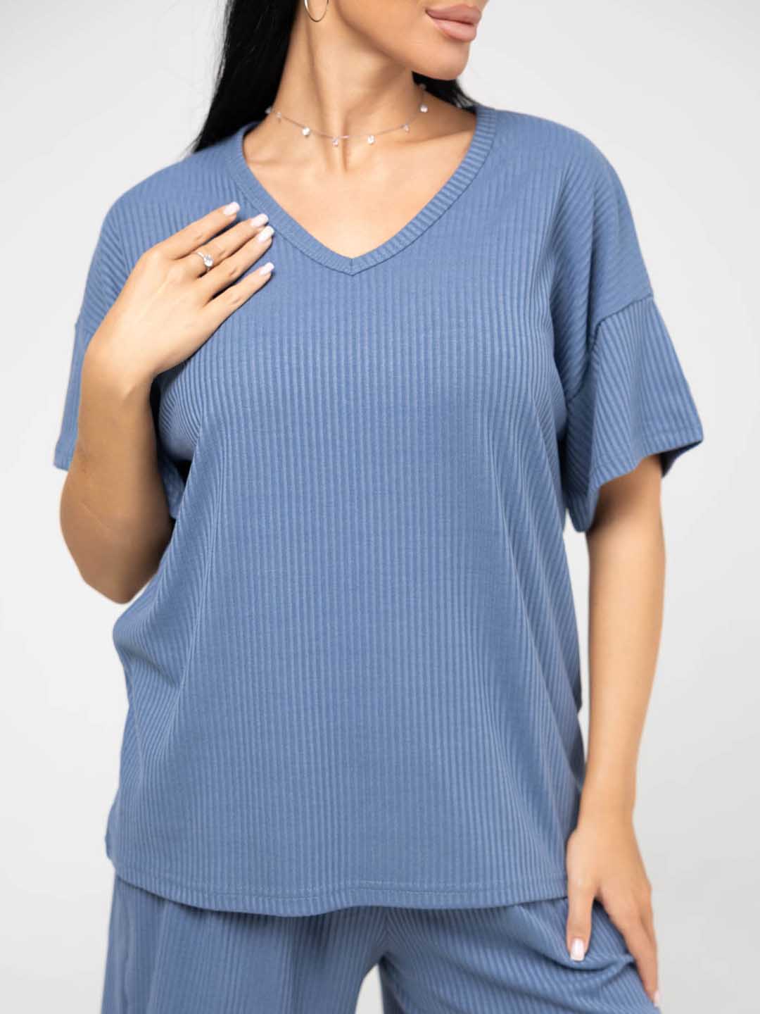 Этот стильный женский трикотажный костюм в синем цвете будет отличным выбором для вашего повседневного гардероба. Изготовленный из качественных материалов, он обеспечивает комфорт и хорошую посадку. Комплект состоит из шорт и футболки, которые легко сочетаются между собой и позволят создать стильный образ для прогулок по городу или встреч с друзьями. Почувствуйте себя комфортно и модно в этом костюме!