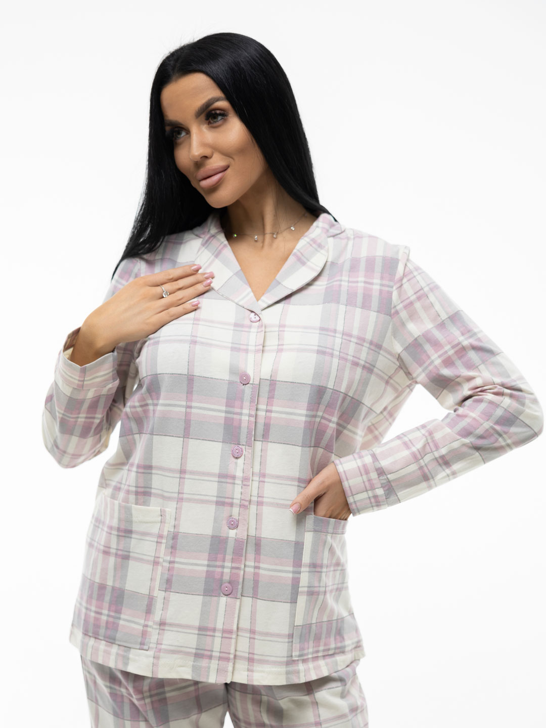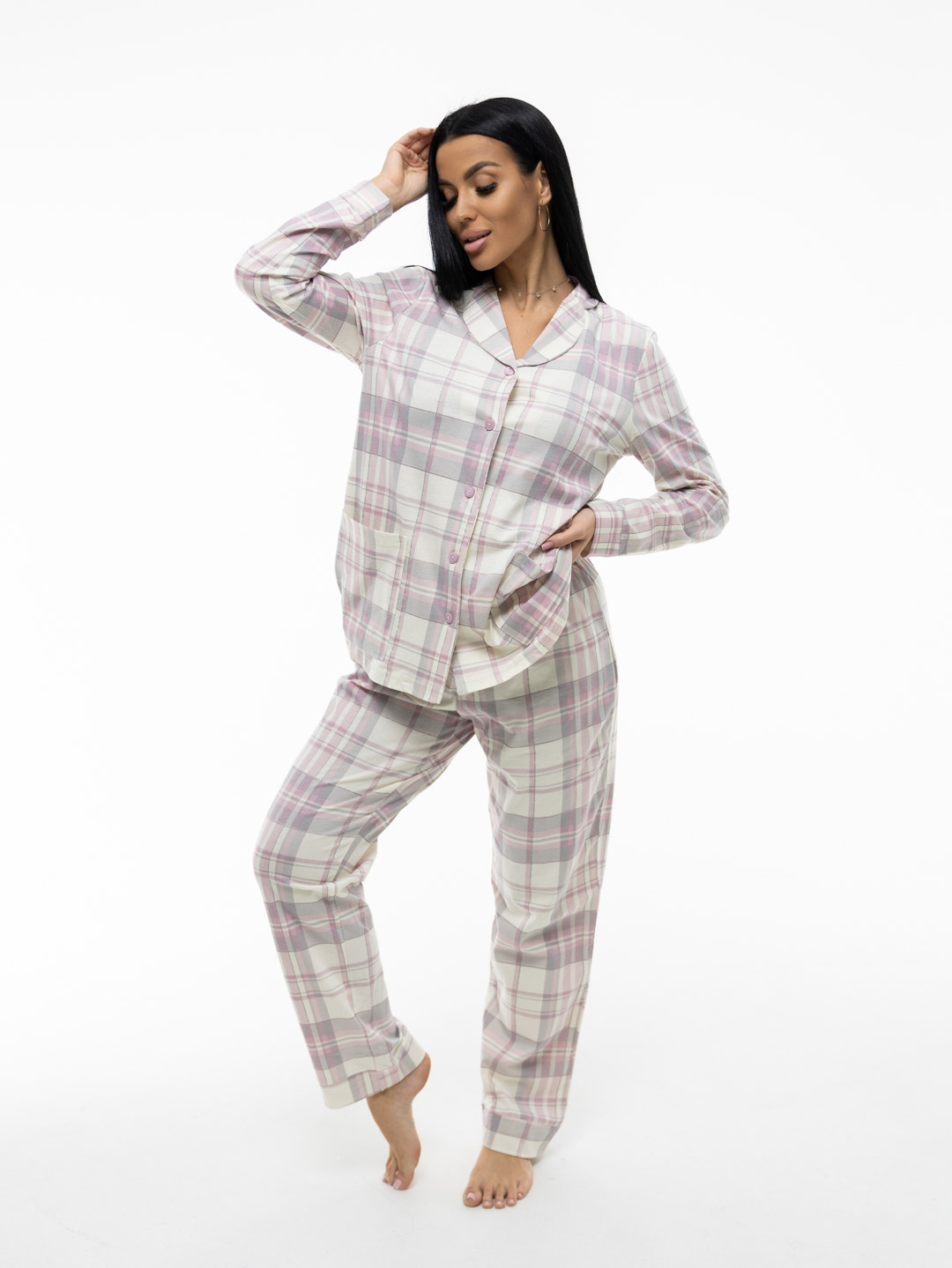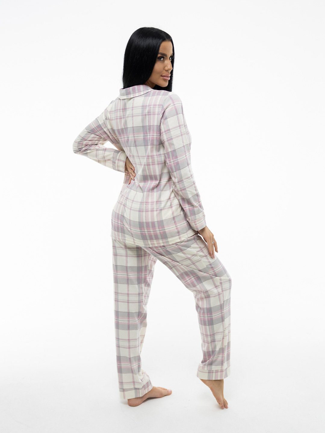 Пижама в клеточку с длинным рукавом станет незаменимой вещью в гардеробе любой девушки. Верх пижамы с отложным воротником, базовым втачным рукавом и двумя накладными карманами на полочке. Брюки умеренного объема на резинке. Наш костюм идеально подойдет для пижамной вечеринки с подружками, фотосессии или просто на каждый день.