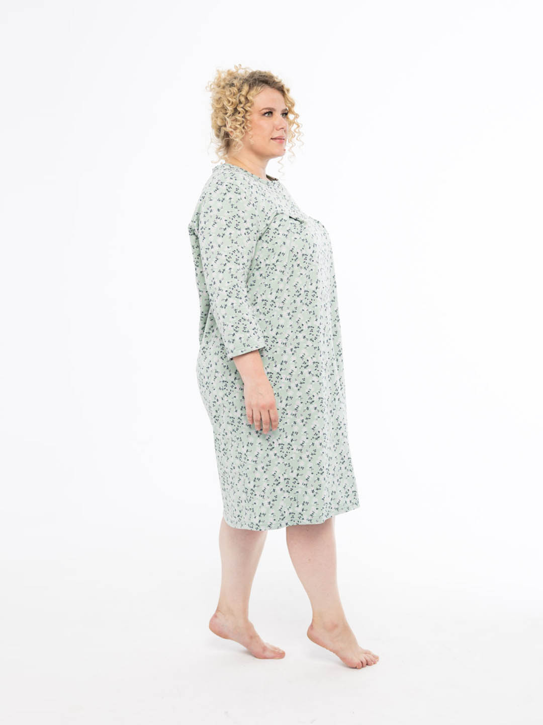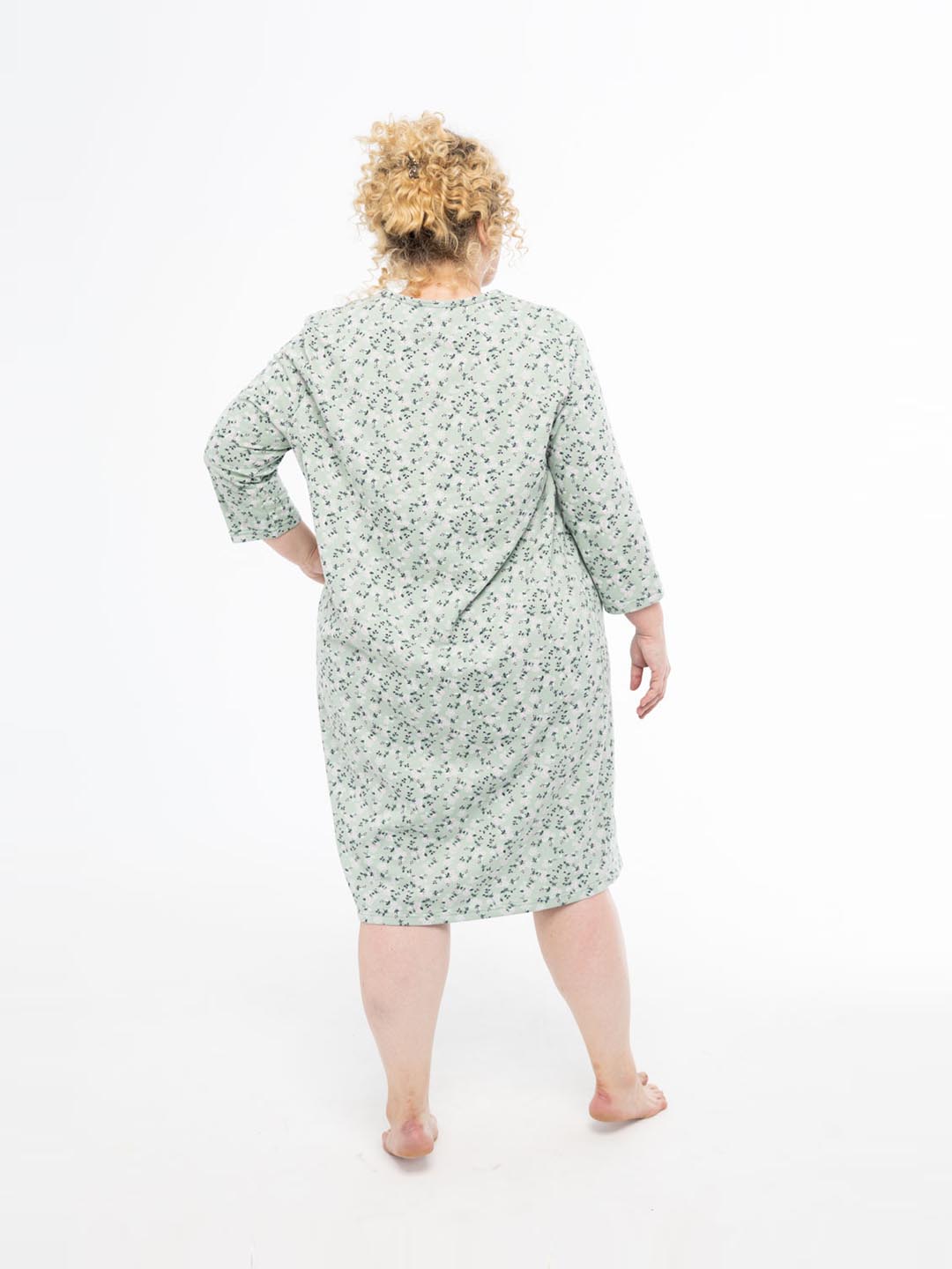 Ночная женская сорочка из футера с начесом, свободного силуэта, длиной ниже колена. Вырез горловины О-образный.