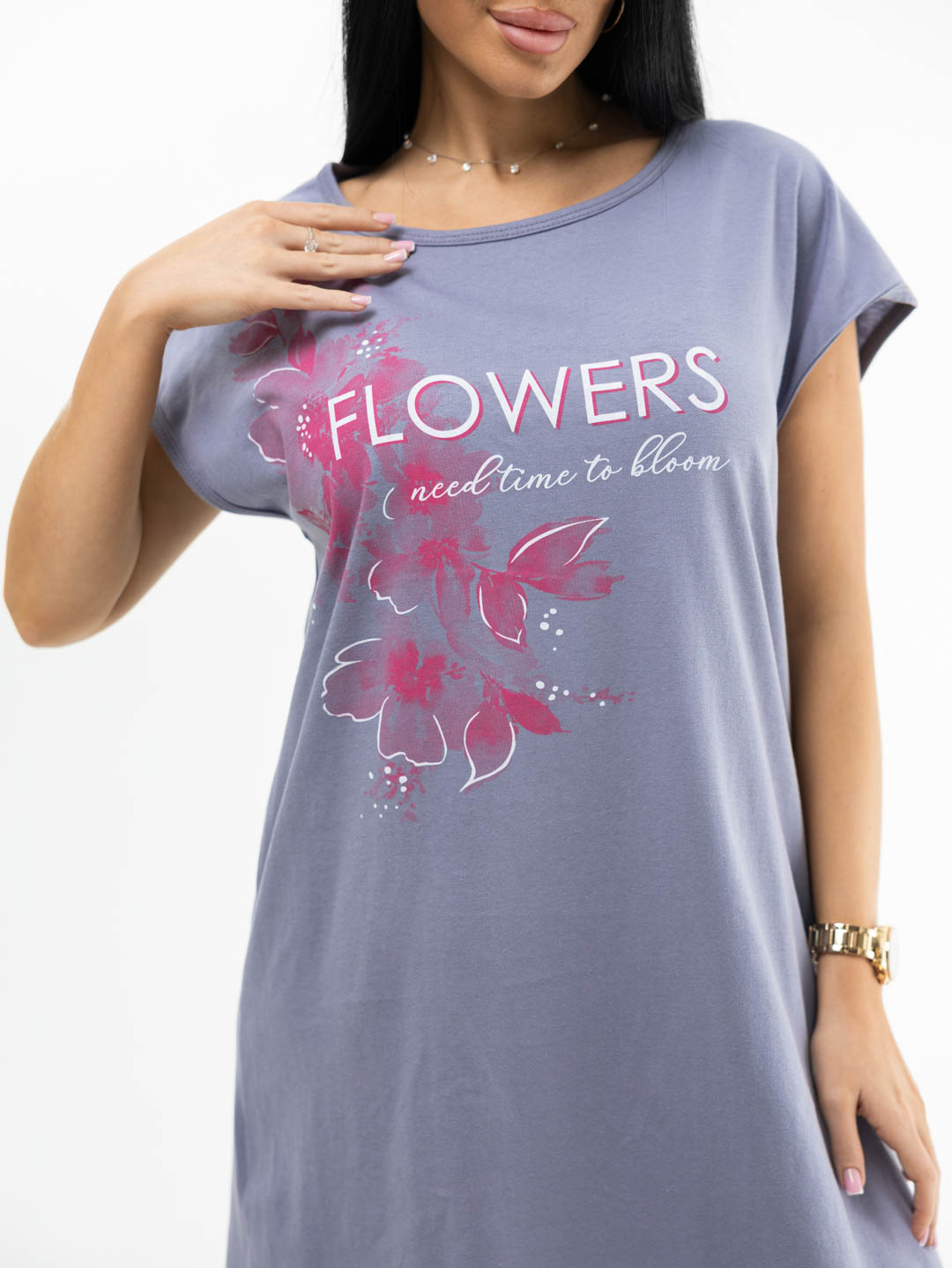 Сорочка ночная женская полуприлегающего силуэта, О-образная горловина. Принт на уровне груди. Длина до колена. В составе чистый хлопок. Благодаря этому сорочка неимоверно приятна в носке. Она дышит и отлично впитывает влагу, не вызывает аллергии, и поэтому подходит девушкам и женщинам с чувствительной кожей.