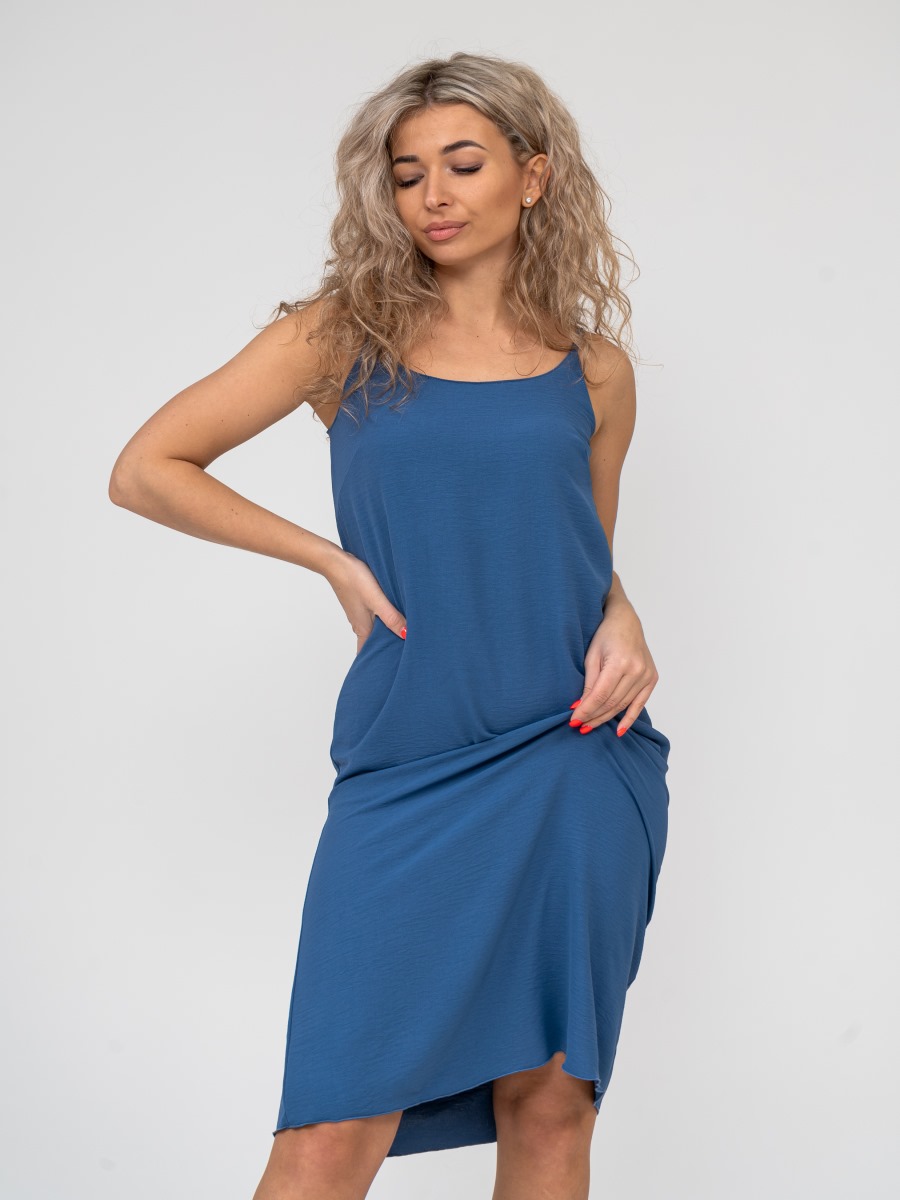 С утра погода так не предсказуема и выбор одежды становится мучительно долгим. Платье сорочка (платье комбинация в бельевом стиле) настоящее спасение для городских модниц. Можно накинуть жакет или джемпер прохладным утром.Платье на тонких бретелях, длины миди из ткани с легким мятым эффектом.