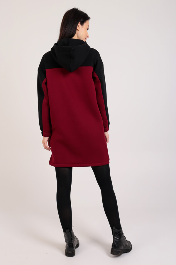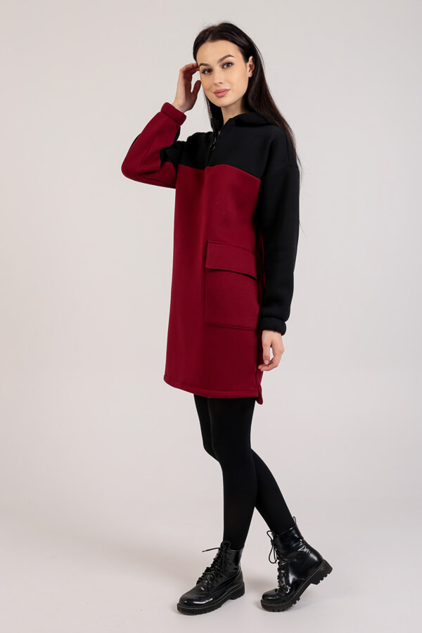 Оригинальное платье-худи из футера с начесом, спущенной линией плеча, кокеткой переходящей в капюшон и большим накладным карманом с клапаном. Платье смотрится очень женственно не смотря на свой спортивный стиль. Главное преимущество в том, что оно подходит любой девушке, независимо от роста, возраста и комплекции.