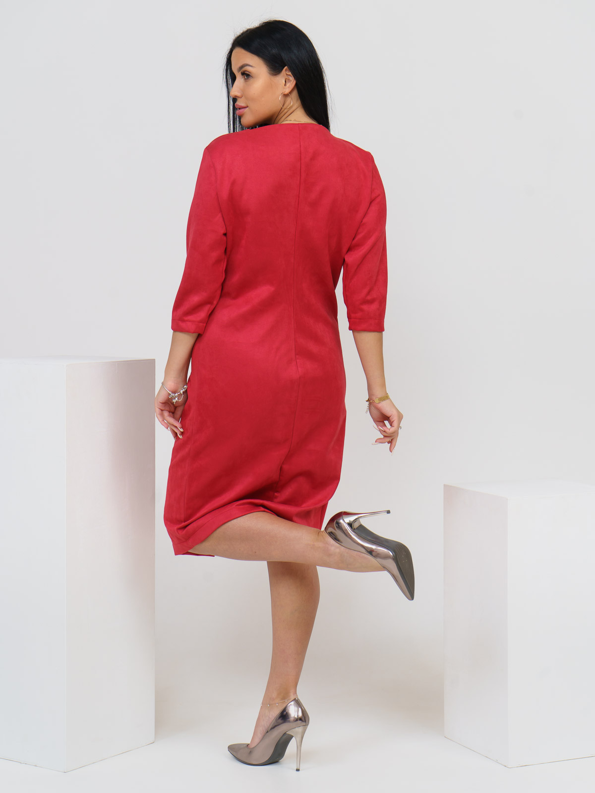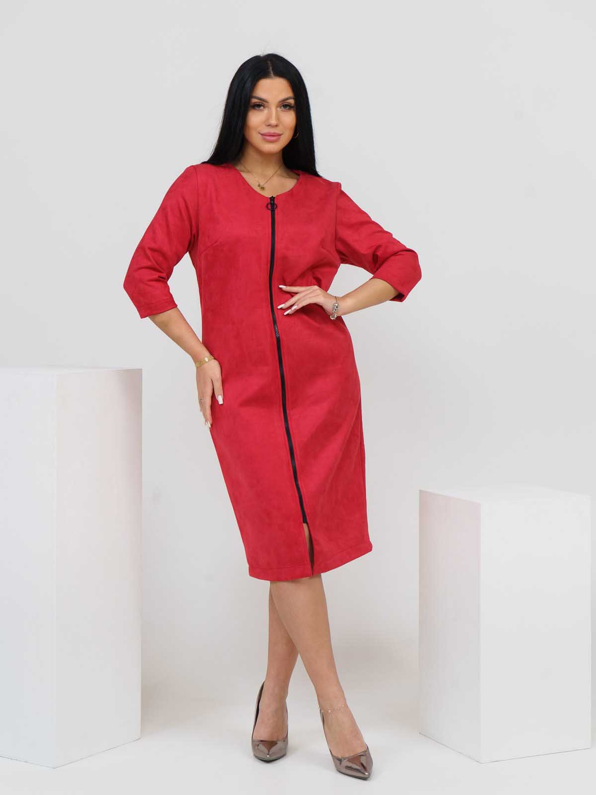 Замшевое женское платье с рукавами 3/4, на тракторной молнии спереди. Одинаково хорошо подходит и для повседневной работы в офисе и для праздничных мероприятий и городских прогулок. Платье без карманов и лишних элементов. Подчеркнет все достоинства фигуры и скроет недостаки.