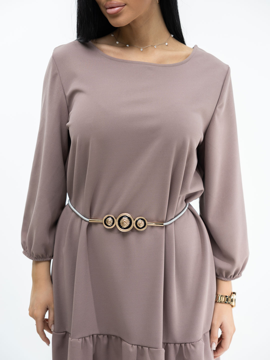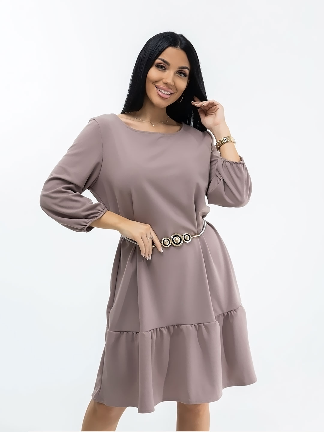 Платье женское свободного силуэта, вырез горловины О-образный, рукава 3/4 присборены. Костюмная ткань средней плотности, почти не мнется.