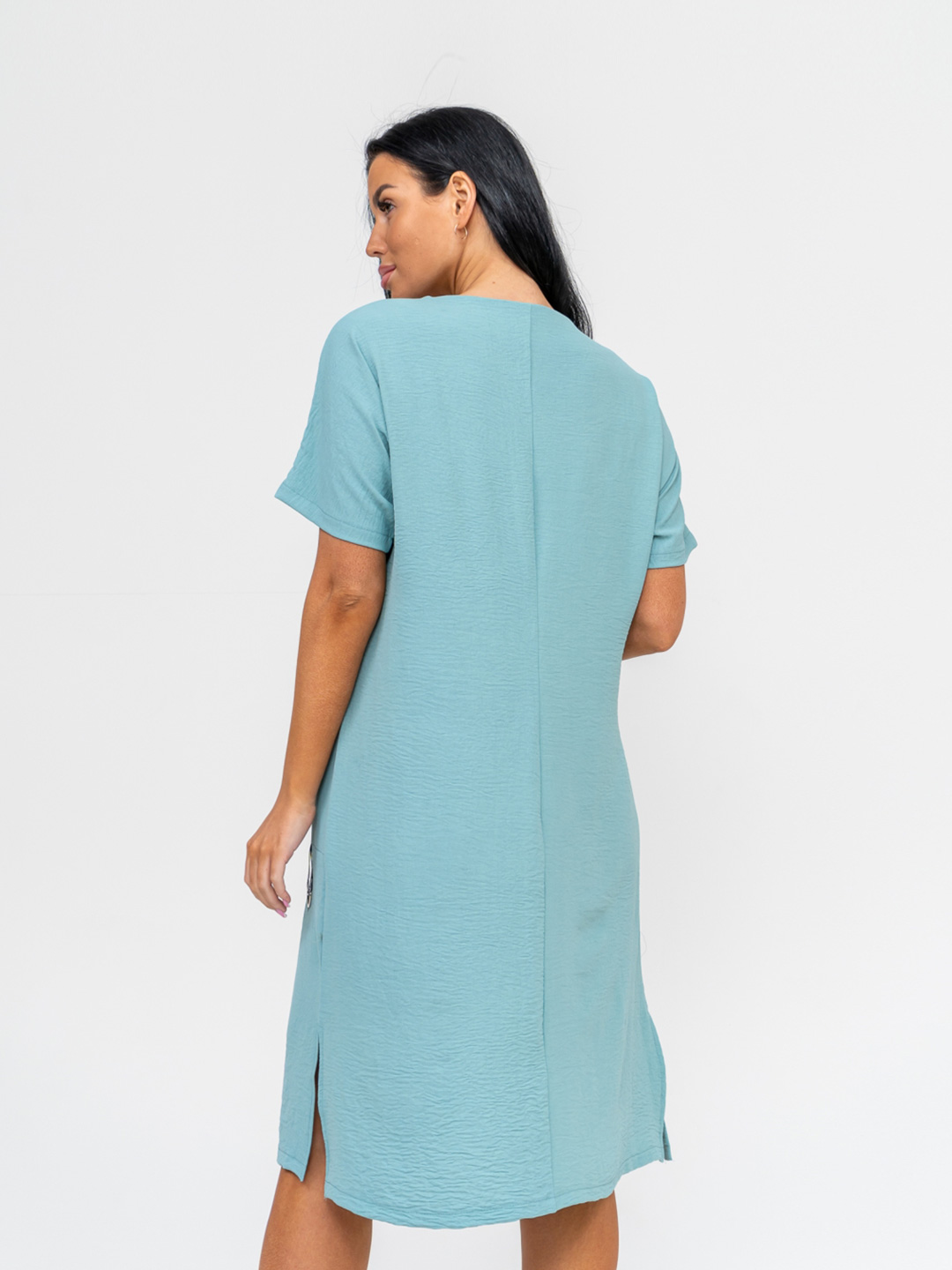 Женское платье сезона весна-лето из легкой, воздушной ткани с коротким рукавом и О-образной горловиной. Платье украсит любую фигуру, отлично будет смотреться как с туфлями, так и с белыми кедами и джинсовкой.