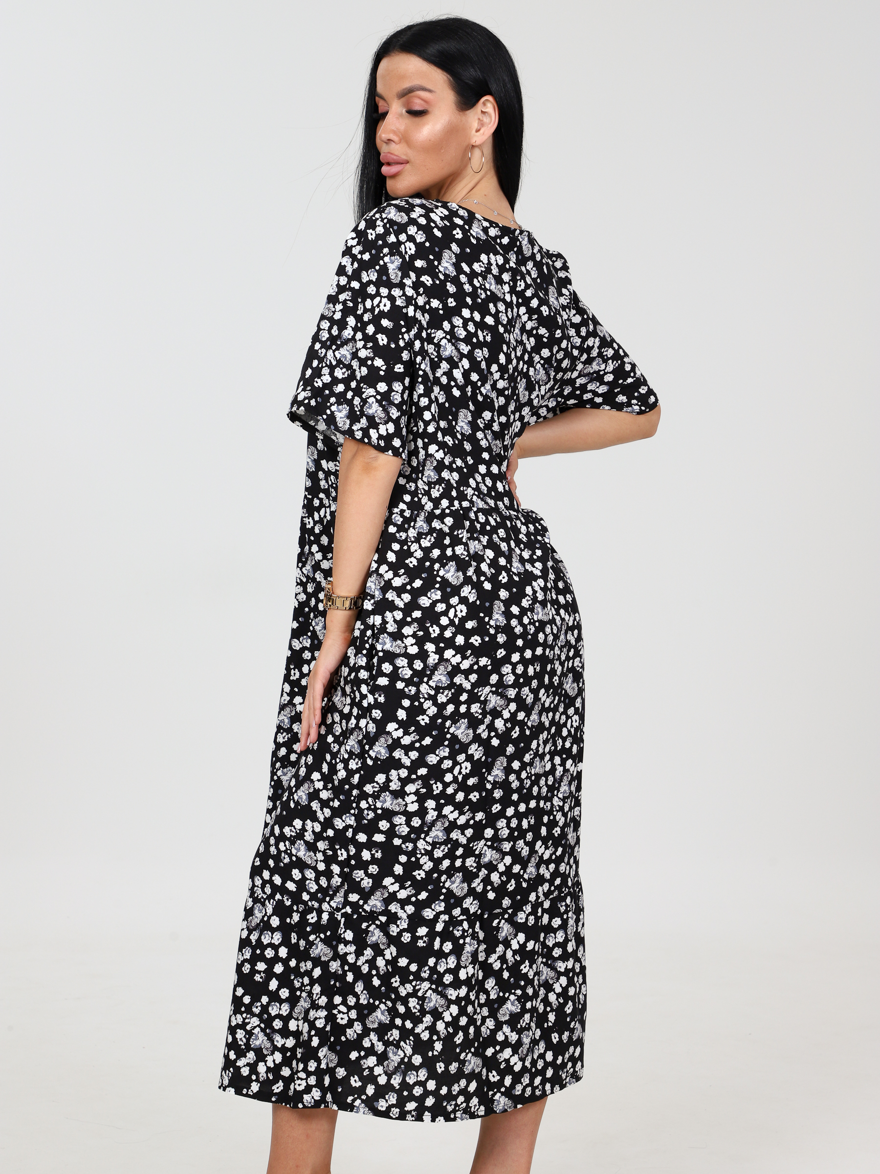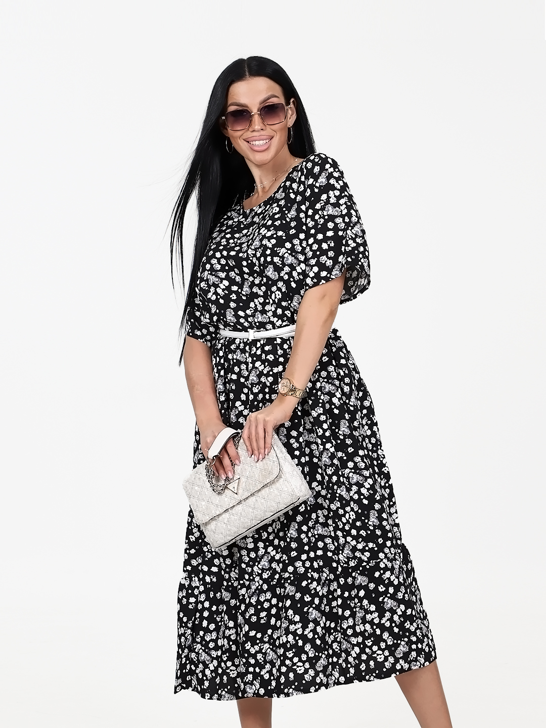 Женское платье сезона весна-лето из легкой, воздушной ткани, с коротким рукавом и О-образной горловиной. Платье украсит любую фигуру, отлично будет смотреться как с туфлями, так и с белыми кедами и джинсовкой.