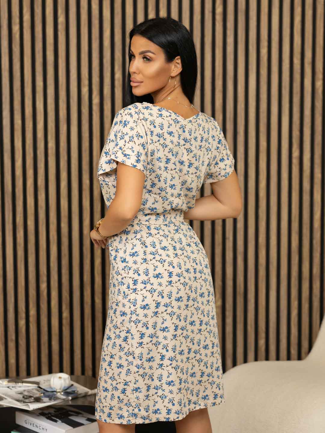 Платье женское с поясом, длиной до уровня колена. Вырез горловины - лодочка. Рукав - короткий, с окантовкой. Мягкий, приятный к телу материал, подарит легкость и повышенный комфорт. Отличный вариант, как для любителей кантри стиля, так и для более деловых и строгих образов.