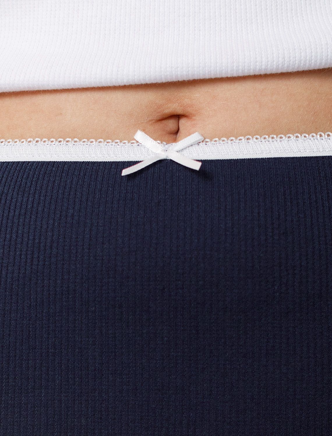 Мягкие классические трусы слипы темно-синего цвета выполнены из фактурного трикотада в рубчик. Особенность полотна - трикотаж кашкорсе удивительной мягкости, намного мягче стандартных вариантов. Хлопок обеспечивает максимальный комфорт даже в течение длительного времени и позволяет коже дышать, а эластан в составе позволяет ткани подстраиваться под особенности фигуры, идеально повторяет контуры тела, не сдавливая и не вызывая дискомфорта. Высокая посадка делает эти слипы подходящими для разных типов женской фигуры, помогает скрыть недостатки в области живота и бедер, создавая аккуратный и привлекательный силуэт. Отделка кружевом добавляет романтичности и женственности. Эти классические слипы станут надежным элементом базового гардероба, подходя под одежду любого стиля. Благодаря эргономичному дизайну и качественным материалам базовые трусы подойдут для ежедневного использования, сочетая практичность и комфорт. Удобная посадка и правильный крой делают их оптимальным вариантом для тех, кто ценит функциональность и качество.