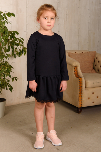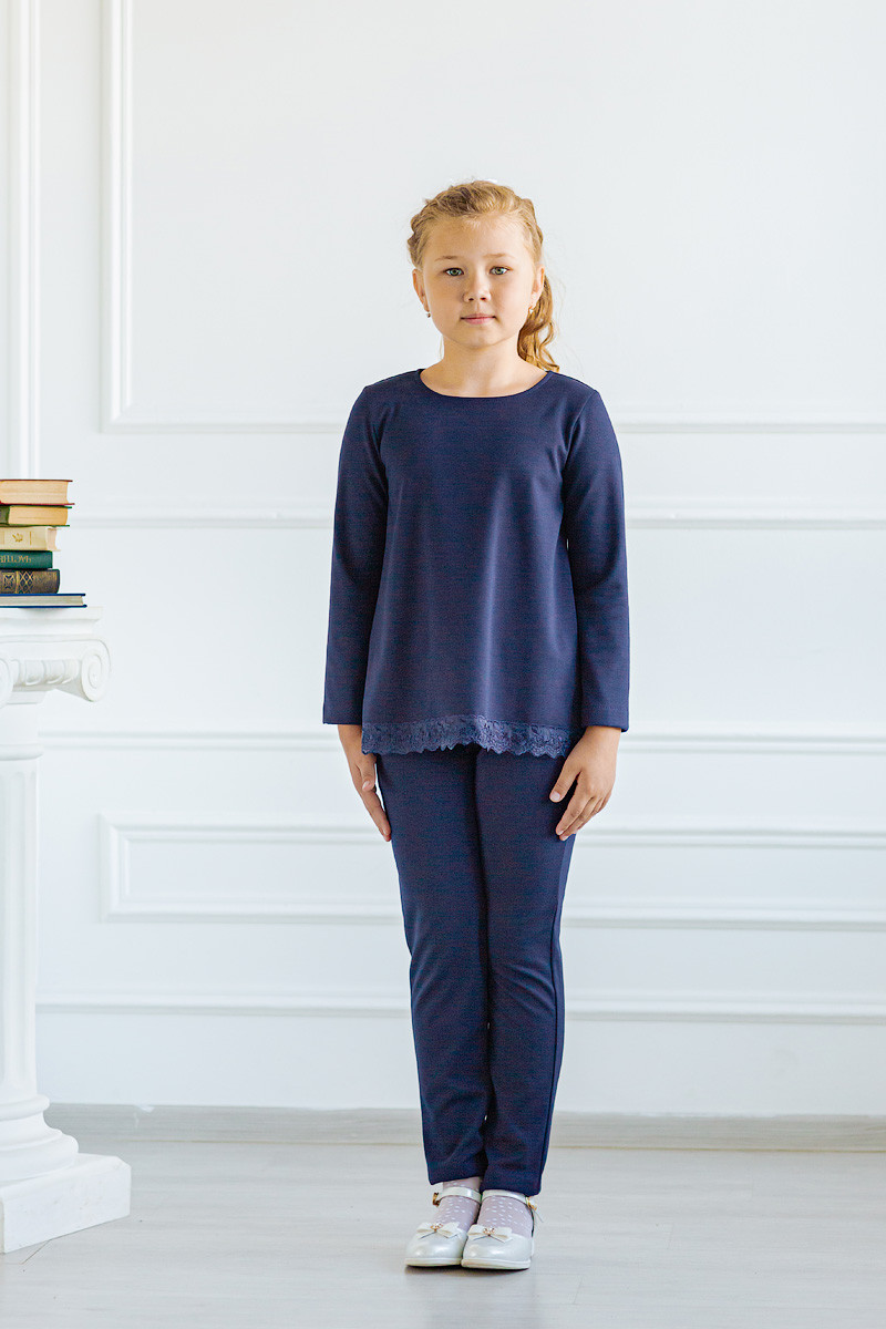 Туника детская школьная из милано темно-синяя с кружевом Dress Code