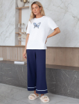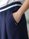 Контрастный кант по низу добавляет стильный акцент и возможность сочетать с белыми футболками нашего бренда. Эти брючки идеально подойдут тем, кто ищет стильное решение с учетом комфорта и удобства, в них вы будете женственны и утонченны даже в домашней обстановке. т.синий