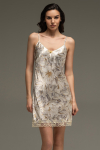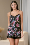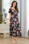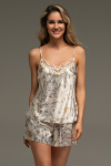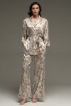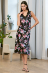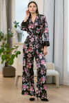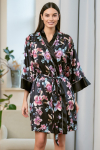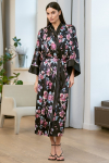 Длинный халат Mia-Amore на пуговицах с рукавом длиной 7/8, выполнен из принтованного смесового шелка и декорирован ажурным кружевом и контрастным кантом. По бокам обработаны карманы. Халат дополнен поясом.