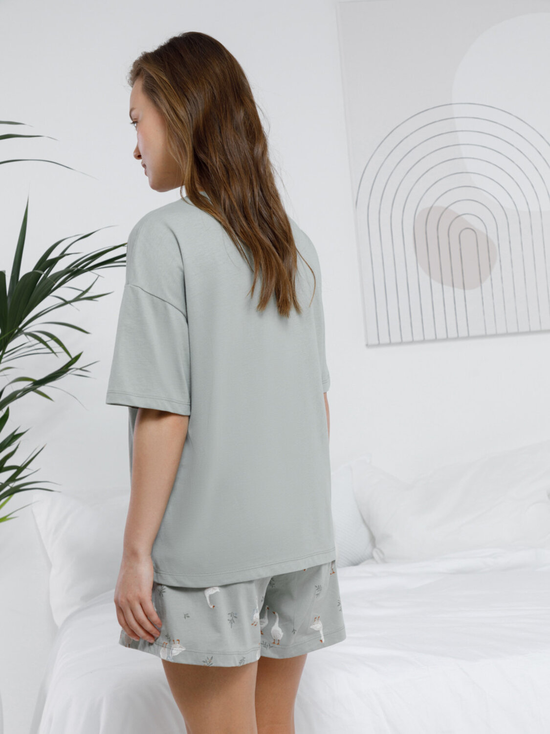 Комплект для комфортного сна и отдыха из трикотажного полотна с набивным рисунком и принтом. Футболка с короткими спущенными рукавами и шорты с мягкой эластичной резинкой в поясе, которые удобно садятся по фигуре. Гладкий материал приятен к телу, не теряет форму и позволяет коже дышать.