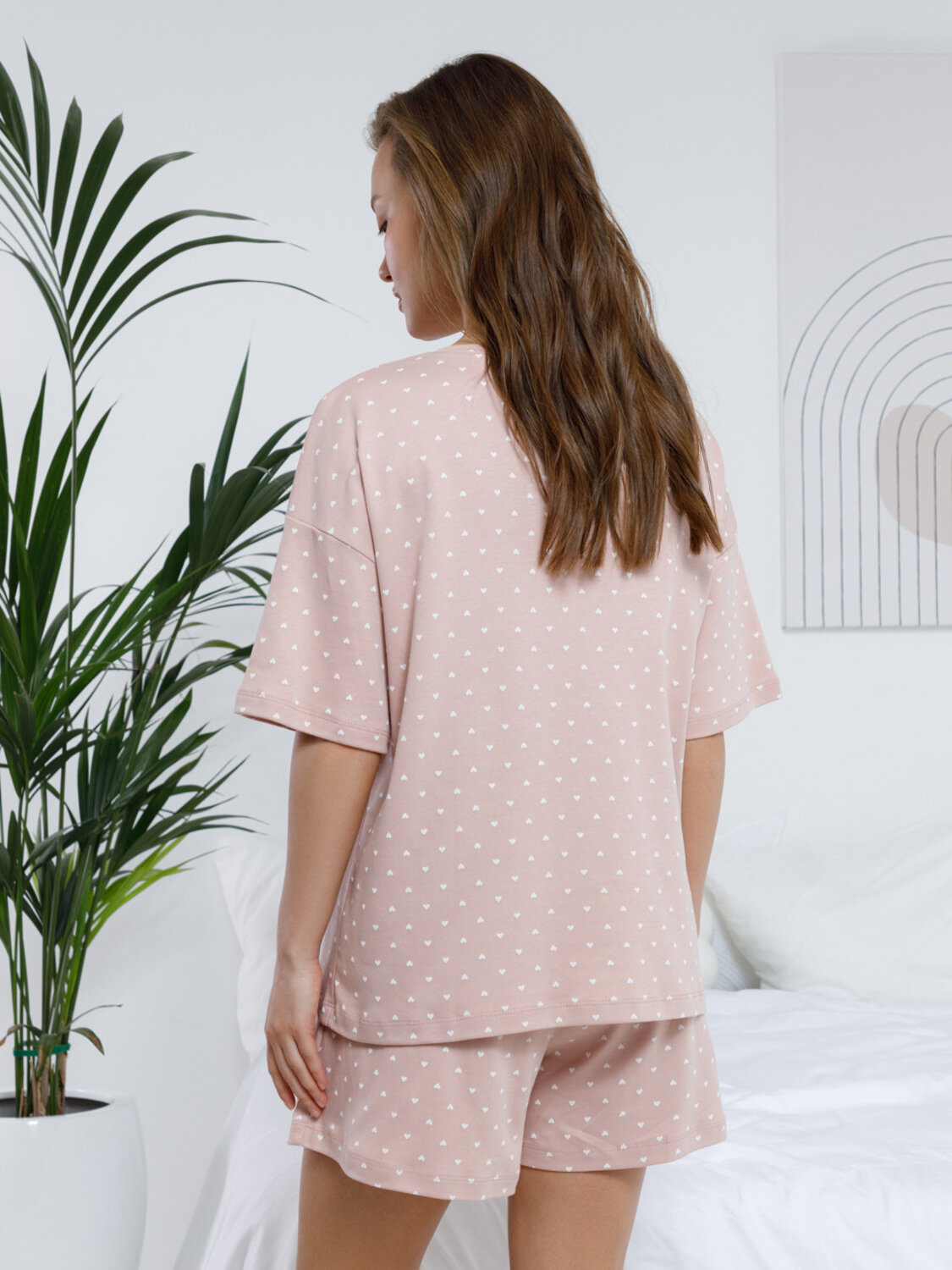 Комплект для комфортного сна и отдыха из трикотажного полотна с набивным рисунком и принтом. Футболка с короткими спущенными рукавами и шорты с мягкой эластичной резинкой в поясе, которые удобно садятся по фигуре. Гладкий материал приятен к телу, не теряет форму и позволяет коже дышать.