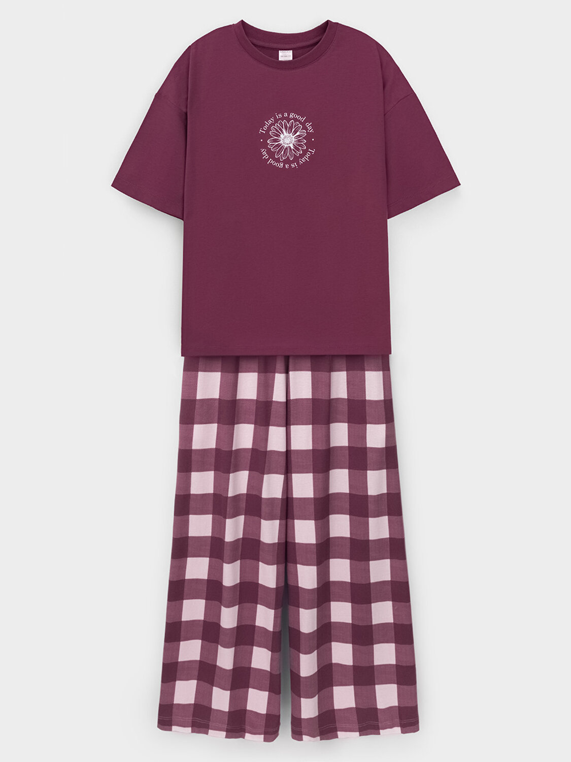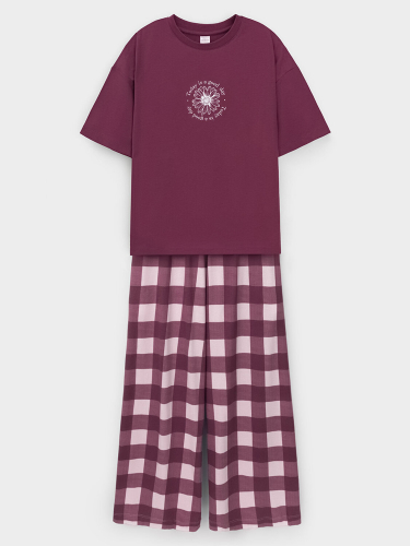 Комплект для комфортного сна и отдыха из гладкого трикотажного полотна. Футболка с короткими спущенными рукавами и прямые брюки с мягкой эластичной резинкой в поясе, которые удобно садятся по фигуре. Лёгкий материал приятен к телу, не теряет форму и позволяет коже дышать. Все трикотажные полотна производятся в соответствии с нормами швейцарского сертификата ЭкоТекс.