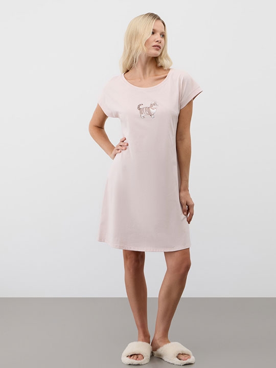 Розово_бежевый 088, 096, 108 Сорочка с круглым вырезом и коротким рукавом. Выполнена из набивного трикотажа супрем с нежным рисунком. 100% хлопок cупрем