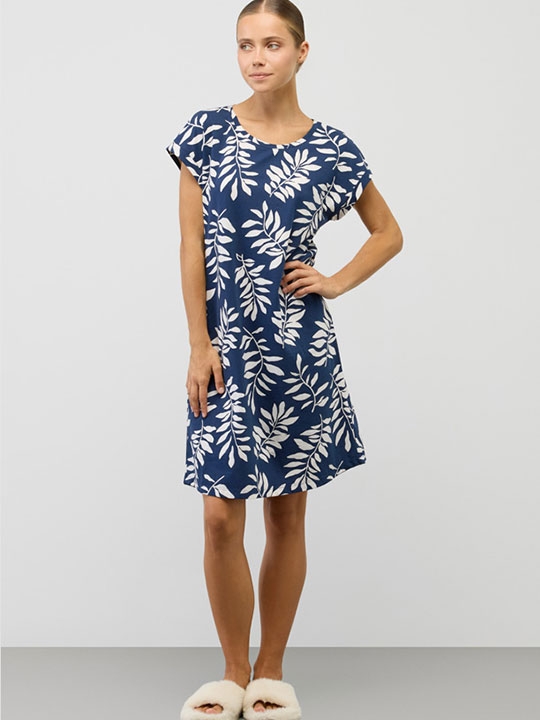 Темно_синий 092, 096, 100, 104, 108 Сорочка с круглым вырезом и коротким рукавом. Выполнена из набивного трикотажа супрем с нежным рисунком. 100% хлопок cупрем