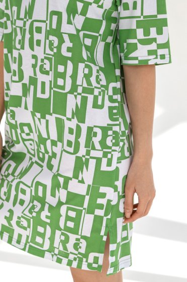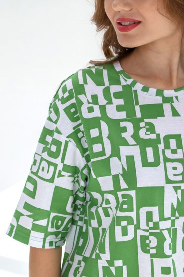 Оптовая продажа. Туника женская с набивным рисунком, из гладкокрашеного трикотажного полотна кулирная гладь, прямая, свободного кроя, укороченная, с короткими втачными рукавами, приспущенным плечом, круглым вырезом горловины, без декоративных элементов, без карманов, разрезами в боковых швах. Горловина овальной формы обработана притачной бейкой. Удобный свободный крой дарит комфорт и ощущение свободы движений. Модель предназначена для повседневной носки. Одежда из хлопка комфортна и приятна для кожи, дышащая и легкая. Рекомендуется бережная стирка при 30С.