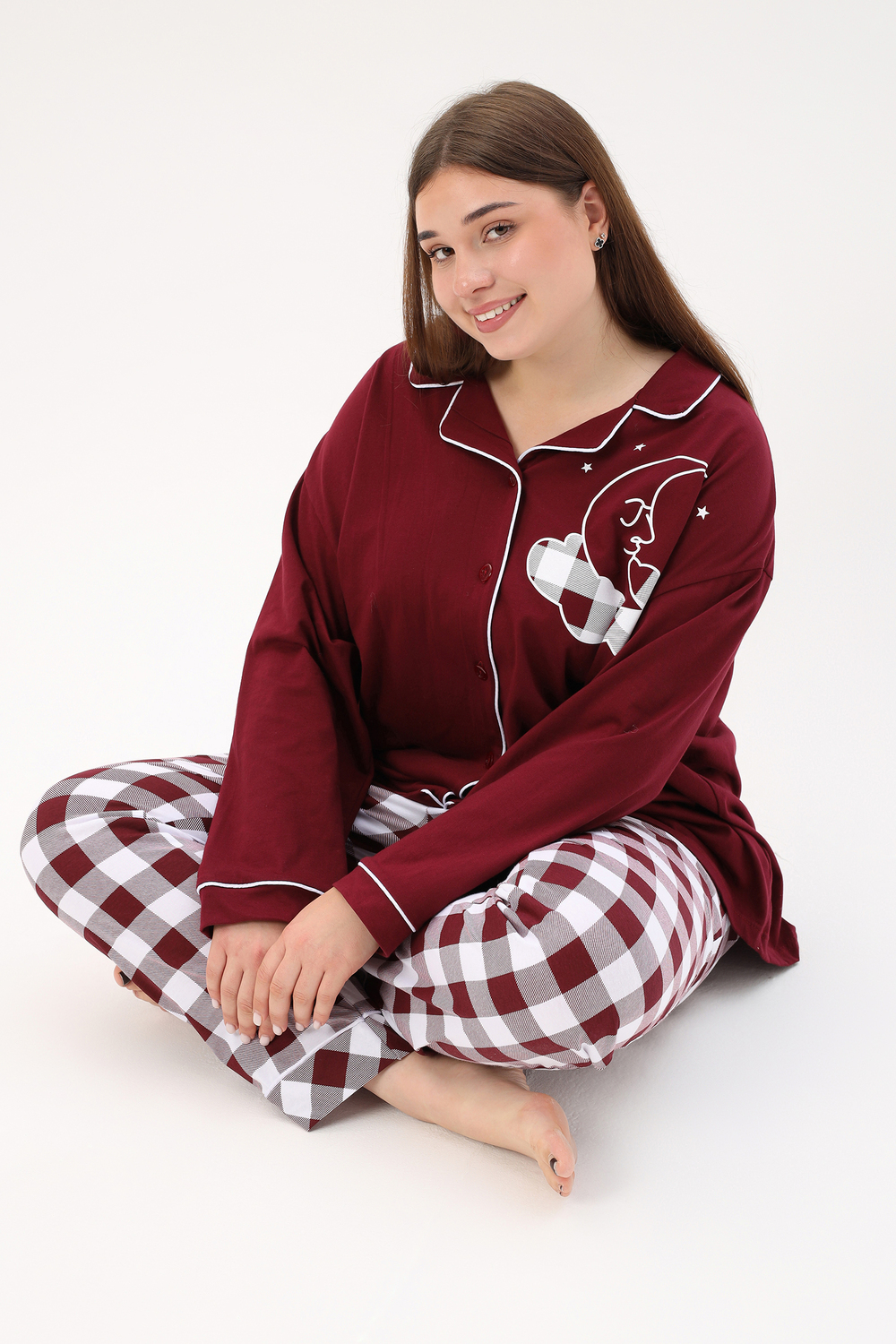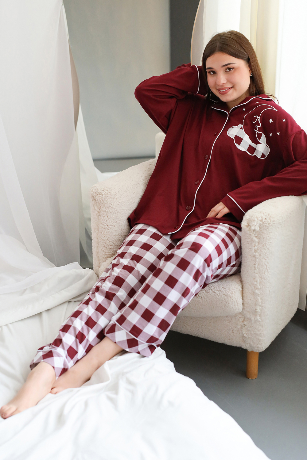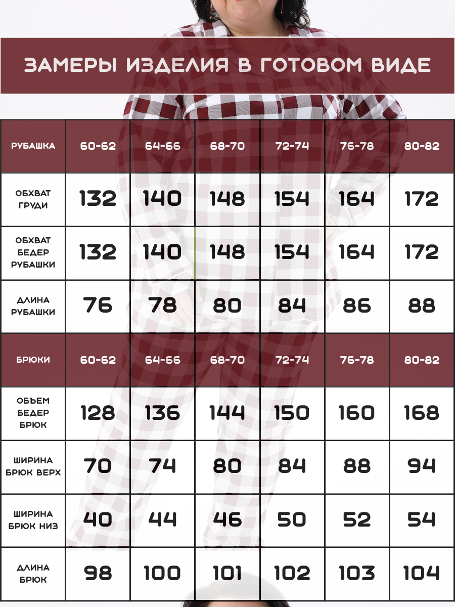 Набор пижамы В Размере из коллекции 2026 станет идеальным выбором для комфортного отдыха дома в прохладные осенние вечера. Этот утепленный комплект, выполненный из 100% хлопка, подарит вам ощущение нежности и тепла. Мягкая рубашка с длинным рукавом и прямые штанишки на резинке с удобными карманами в шве создают стильный и уютный образ. Рисунок в виде бордовой сетки придает пижаме особый шарм, а свободный крой обеспечивает максимальный комфорт для женщин plus size. Легкий трикотажный материал приятен к телу и не сковывает движений. Этот набор станет прекрасным подарком на Рождество или для тех, кто ценит комфорт и уют. Благодаря натуральным материалам и продуманному крою, пижама В Размере станет вашим любимым спутником в холодные осенние ночи. Цвет: коричневый; Материал: кулирка пенье;кулирка пенье; Состав: 100% хлопок.