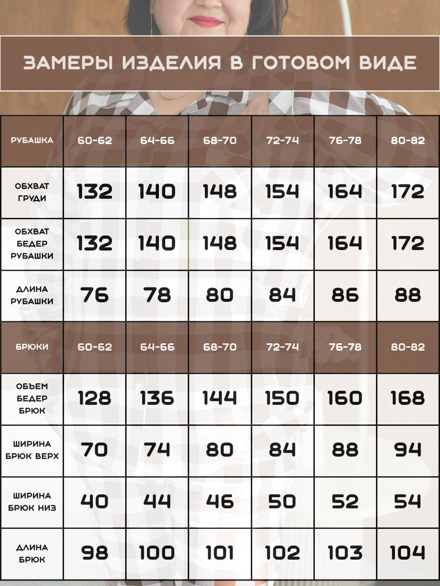 Представляем вам уютную и стильную пижаму, созданную специально для женщин, ценящих комфорт и элегантность. Эта пижама станет идеальным выбором для холодных зимних вечеров, обеспечивая вам тепло и уют в любое время суток. Она сшита из 100% хлопка, что гарантирует мягкость, приятную тактильность и комфорт при ношении. Модель выполнена в классическом клетчатом дизайне, который никогда не выходит из моды. Пижама состоит из стильной рубашки с длинными рукавами на пуговицах и просторных брюк с высокой посадкой, обеспечивая свободу движений и максимальный комфорт. Благодаря свободному крою и мягкой ткани, эта пижама идеально подходит для женщин больших размеров, обеспечивая им комфорт и уверенность. Она станет отличным подарком на Рождество для любимых женщин, а также прекрасным вариантом для ношения в больнице или дома. Цвет: коричневый;бордовый;черно-белый; Материал: кулирка пенье;кулирка пенье; Состав: 100% хлопок.