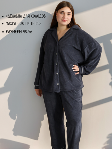 Девочки, знакомьтесь пижама-объятие для холодных вечеров! Цвет: графит; Материал: кулирка с лайкрой;махра; Состав: Хлопок 90% лайкра 10%.