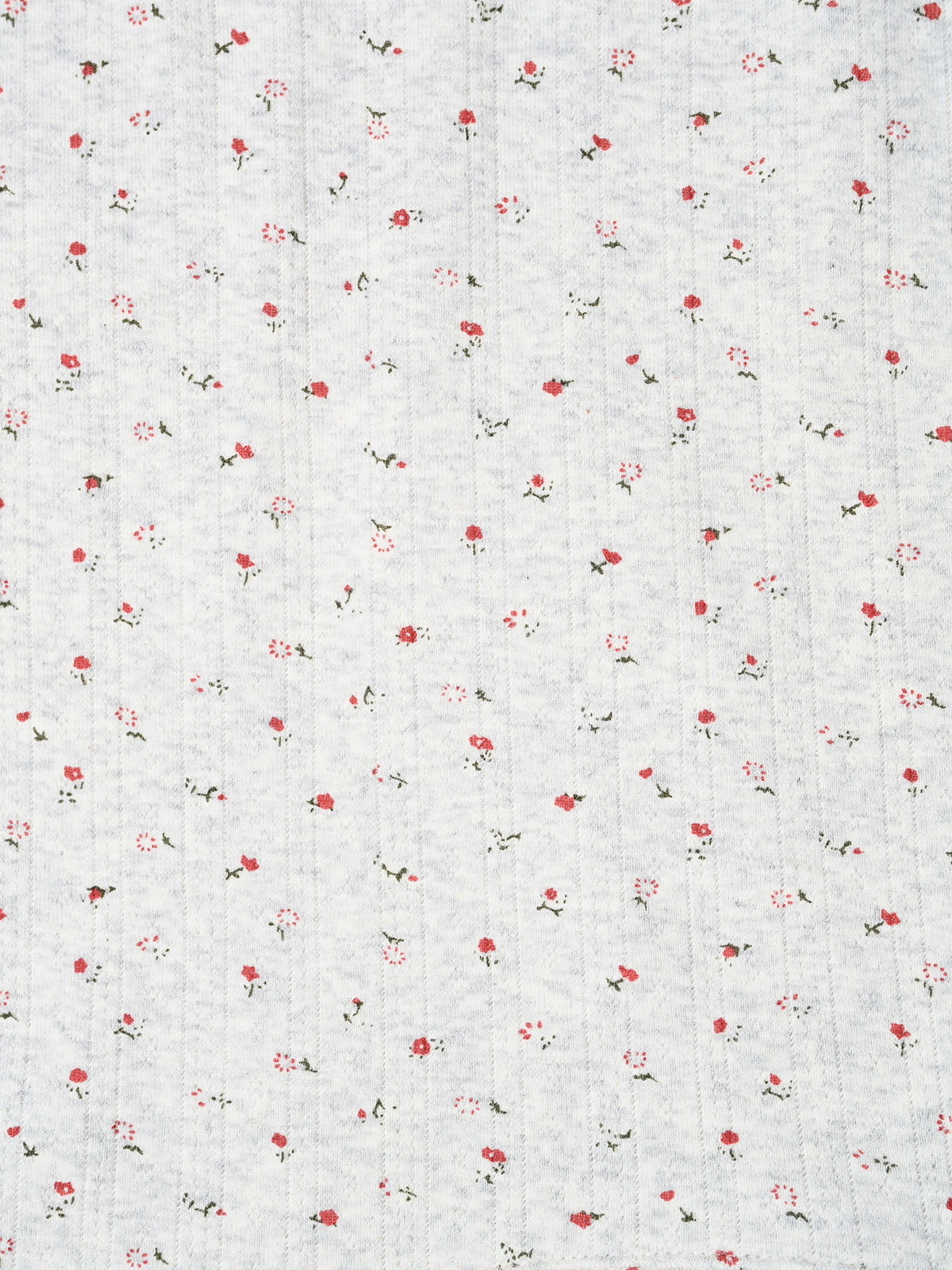 Универсальная уютная пижама с шортами на любой сезон. Цветочный принт, фактура и волнистый край создают воздушный и романтичный образ. Выполнена из трикотажа пуантель: мягкого хлопкового полотна с характерным ажурным плетением. Такая ткань согревает и при этом пропускает воздух — идеальная пижама, которую можно носить круглый год.  Мягкая резинка не оставляет следов на коже, а материал подходит даже для чувствительной кожи.