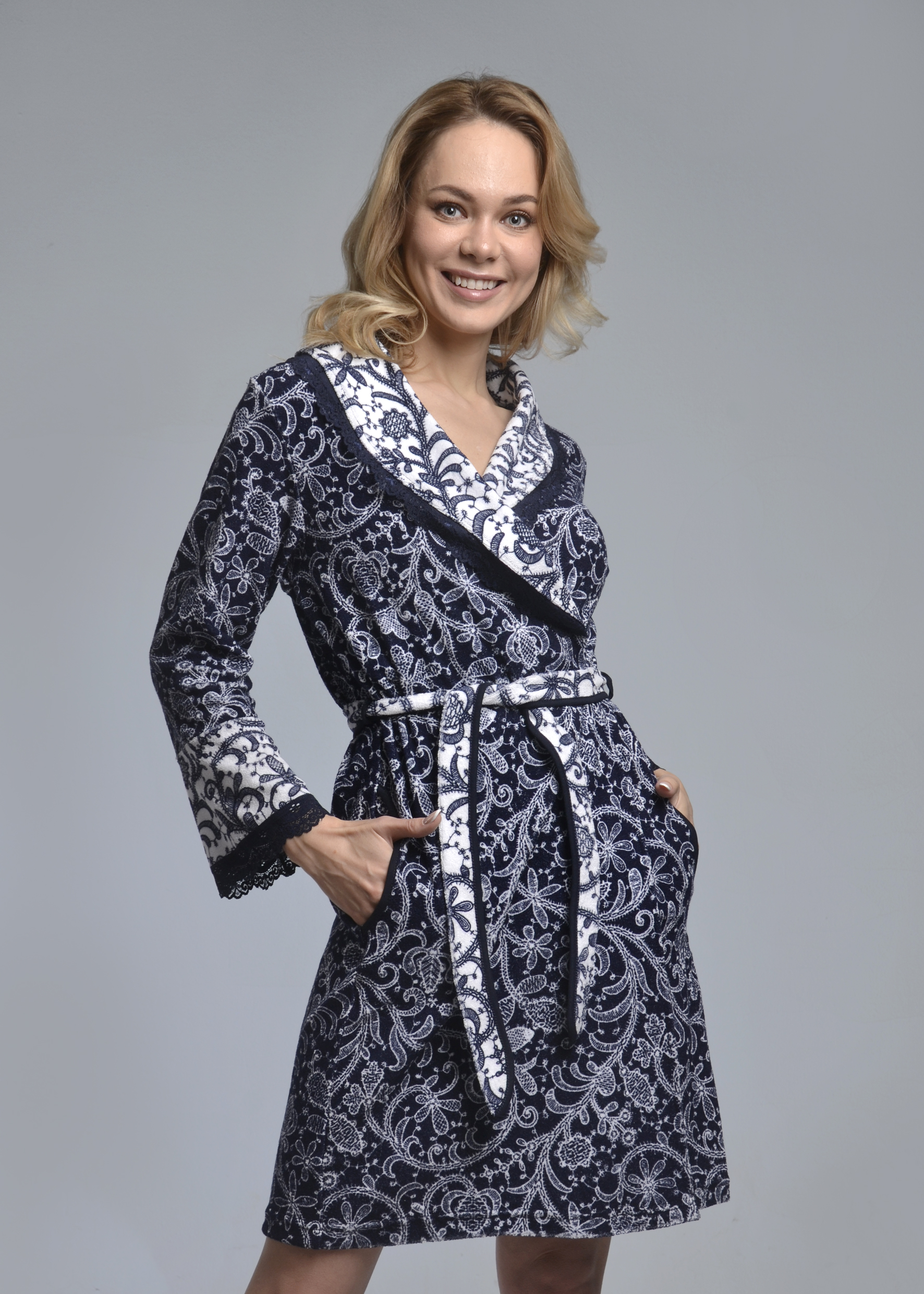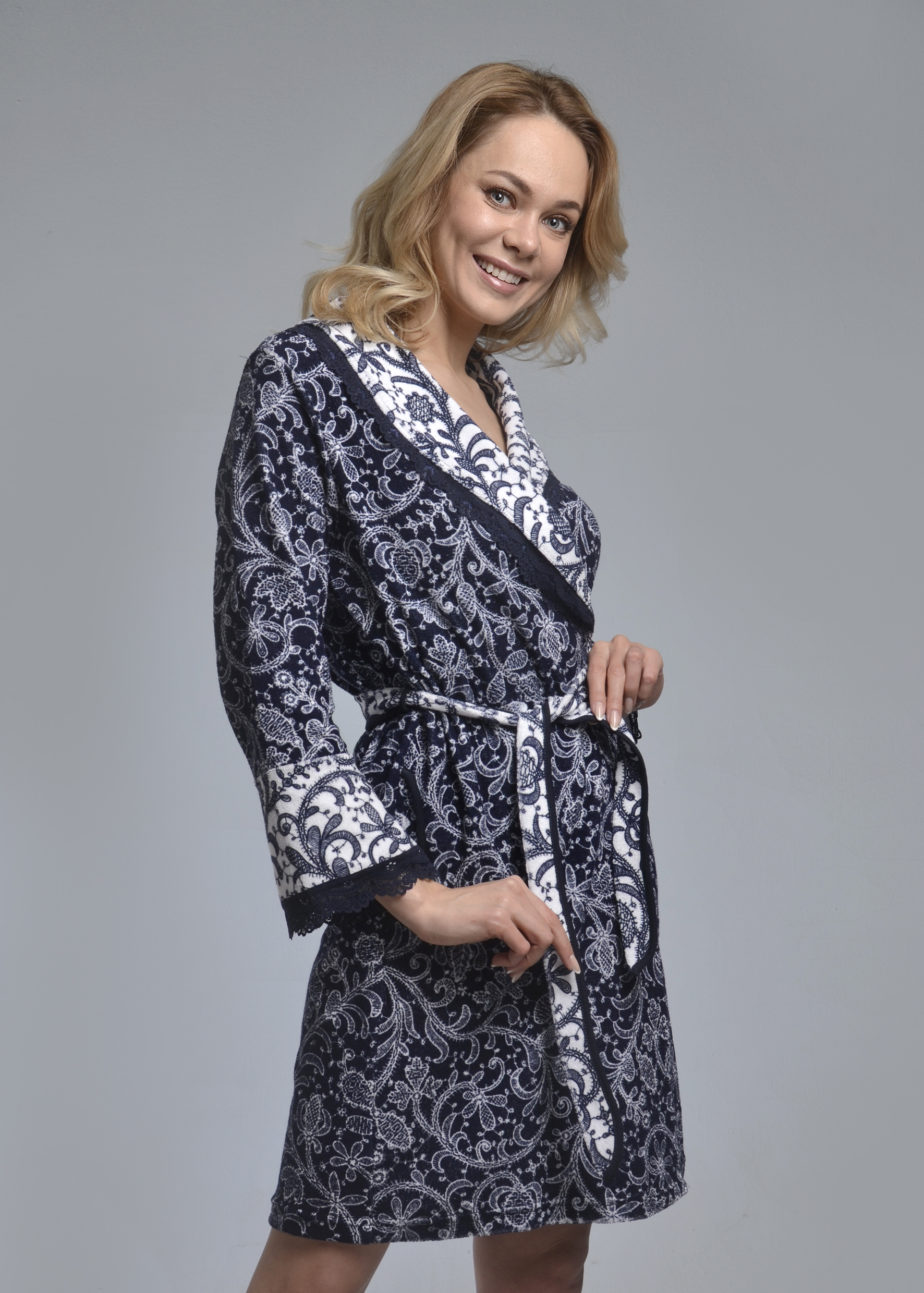Халат женский "ДЕНЬ И НОЧЬ" махровый (темно синий №15)