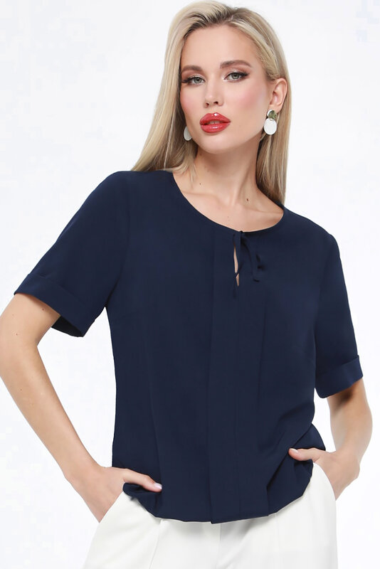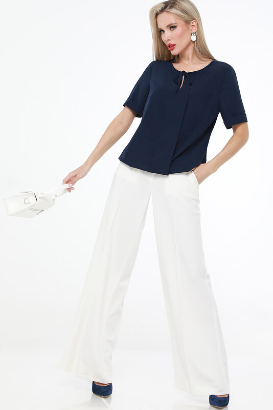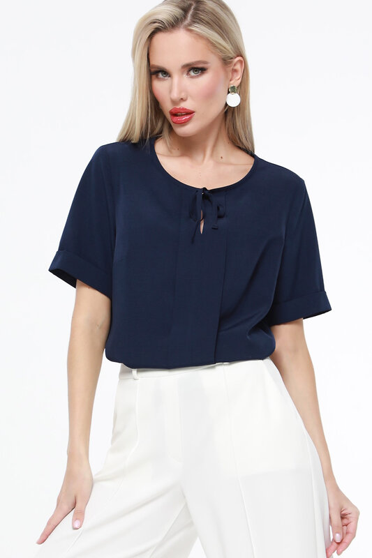 Нарядная блузка с бантом — невероятно женственная модель, которая украсит как повседневный, так и вечерний наряд и точно не останется незамеченной. Свободный крой дарит чувство легкости и прекрасно смотрится на женщинах любой комплекции. Короткие рукава добавляют нежности и романтичности. Изюминкой блузки становятся завязки у воротника, которые можно завязать на модный в этом сезоне бант. Модель выполнена из невесомой ткани, которая хорошо пропускает воздух, эффектно струится в движении и приковывает взгляды. Рекомендуется стирать блузку в бережном режиме при температуре до 30 градусов с использованием мягких моющих средств, тщательно расправить и сушить на плечиках.