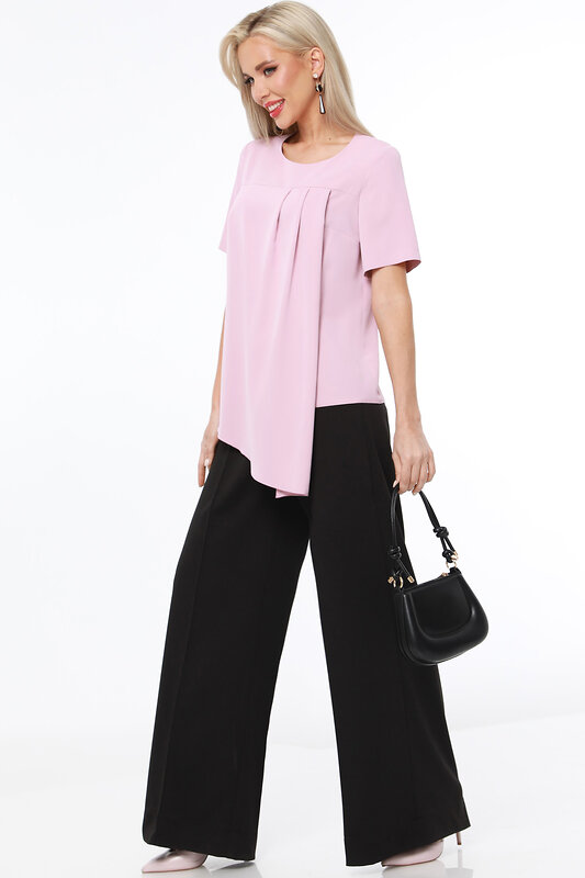 Эта блузка с асимметричными складками на груди – отличный выбор для тех, кто ценит комфорт, стиль и оригинальность. Она сочетает в себе высококачественные материалы, продуманный дизайн и функциональность, что делает её незаменимым элементом вашего гардероба. Она приятна на ощупь и обеспечивает комфорт в течение всего дня. Ткань имеет отличные дышащие свойства и не теряет свою форму после стирки, что делает ее идеальным выбором для повседневной одежды. Округлый вырез подчеркивает линию шеи и декольте, добавляя образу женственности и утонченности. Одной из ключевых особенностей этой блузки являются асимметричные складки на груди. Складки создают интересный визуальный эффект, добавляя динамичности и оригинальности в дизайн. Они привлекают внимание и делают блузку особенной, выделяя ее среди других моделей. Асимметричные складки также помогают создать более объёмный и структурированный силуэт. Короткие рукава делают блузку идеальной для теплого времени года. Уход за блузкой не требует особых усилий. Рекомендуется бережная стирка при 30 градусах, что поможет сохранить цвет и форму изделия на долгое время.