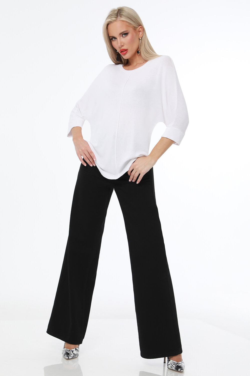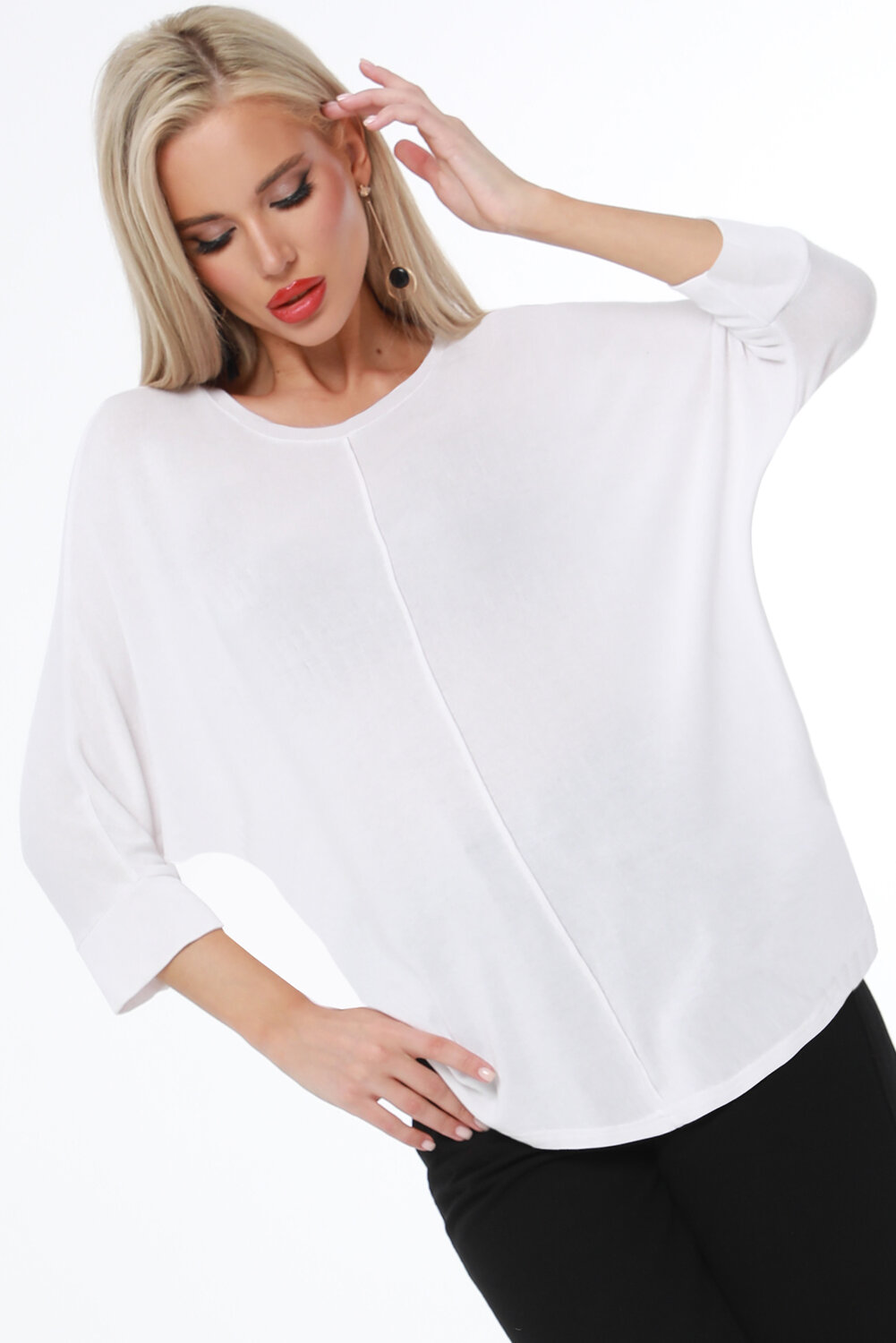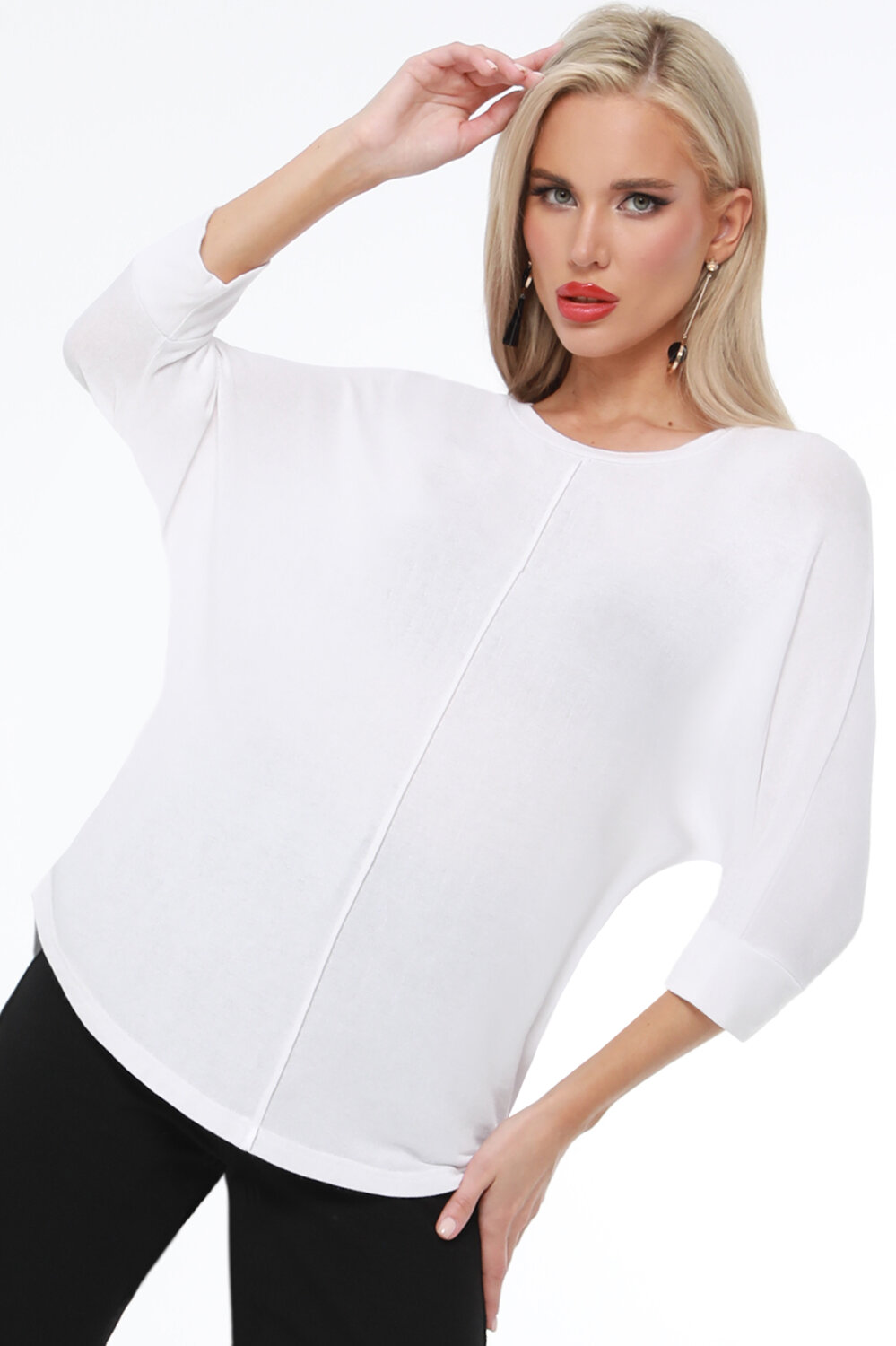 Блузка из трикотажа — это универсальный элемент гардероба, который подойдет для любого времени года. Ее можно носить как в теплую, так и в прохладную погоду, что делает блузку отличным выбором для повседневной носки. Изготовленная из качественного трикотажа, она обладает мягкой и приятной на ощупь текстурой, обеспечивающей комфорт в течение всего дня. Вырез аккуратно подчеркивает линию шеи, делая образ завершенным и стильным. Рукава 3/4 выполнены в стиле "летучая мышь", что придает модели особую изюминку. Этот фасон рукавов отличается свободным покроем, обеспечивающим дополнительное удобство и свободу движений. Блузка идеально подходит для повседневного использования благодаря своему непринужденному, но стильному дизайну. Она легко комбинируется с различными элементами гардероба — от джинсов и юбок до брюк и шортов. Это делает ее универсальным решением для создания множества стильных и удобных образов.