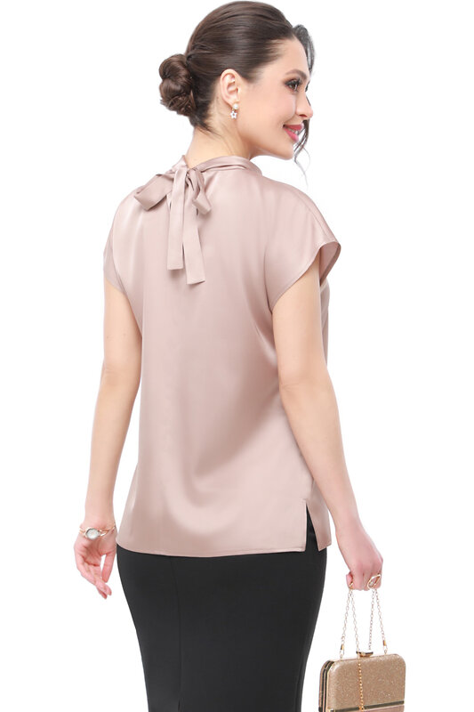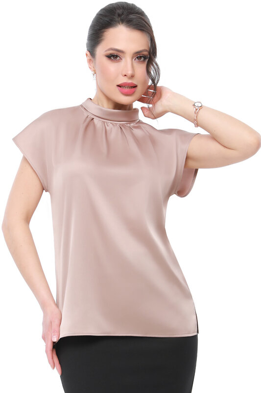 Блузка имеет короткие рукава, что обеспечивает свободу движений и позволяет продемонстрировать изящество рук. Кроме того, короткие рукава делают блузку идеальной для теплой погоды и позволяют сочетать ее с легкими брюками или юбками.