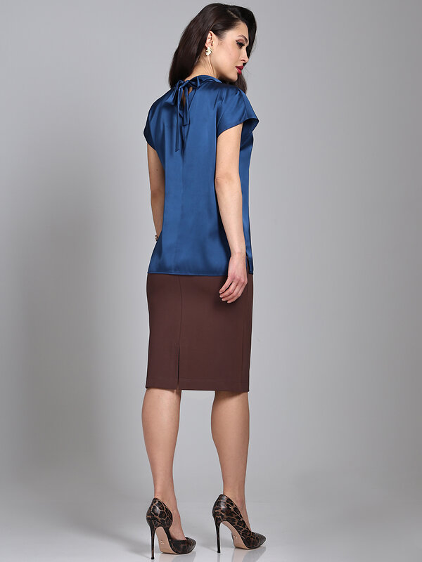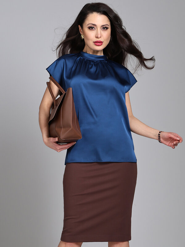 Блузка - это идеальное сочетание стиля и комфорта. Выполненная из высококачественной ткани армани шелк, она обеспечивает непревзойденную мягкость и гладкость на ощупь, а также отличную воздухопроницаемость и легкость. Блузка прекрасно подойдет для демисезонного периода, обеспечивая комфорт и уют даже в прохладные дни. Одним из ключевых особенностей этой блузки является ее уникальный воротник-стойка, который не только добавляет ей элегантности, но и обеспечивает дополнительную защиту от ветра и холода. Благодаря своей универсальности, воротник-стойка позволяет сочетать блузку с различными аксессуарами и украшениями, создавая множество интересных образов. Блузка имеет короткие рукава, что обеспечивает свободу движений и позволяет продемонстрировать изящество рук. Кроме того, короткие рукава делают блузку идеальной для теплой погоды и позволяют сочетать ее с легкими брюками или юбками. Застежка на блузке представлена в виде банта, что придает ей особый шарм и изысканность. Бант может быть завязан как в классический узел, так и в более свободный, в зависимости от личных предпочтений и стиля.