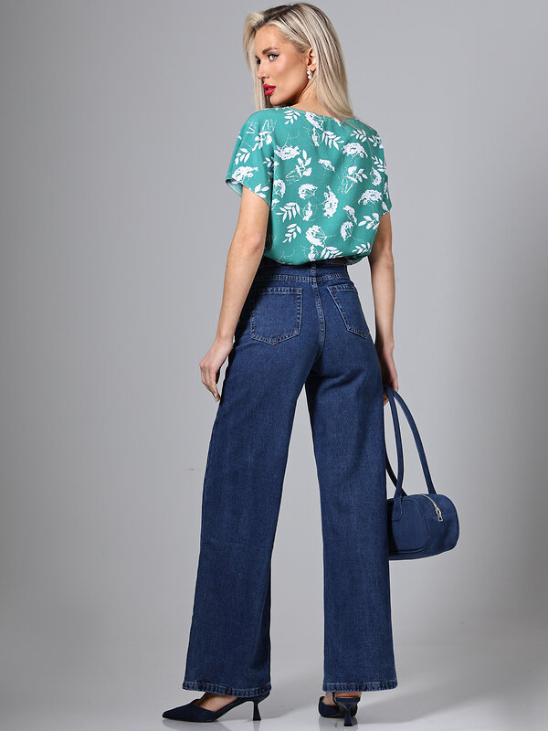 Блузка изготовлена из легкой блузочной ткани, идеальной для демисезонного периода, обеспечивая комфорт и элегантность в носке. Цвет блузки - бирюзовый, который всегда в моде и легко сочетается с различными элементами гардероба, позволяя создавать разнообразные образы. Блузка не имеет застежки, что делает ее более удобной и практичной в использовании. Вырез горловины округлый, что придает блузке нежность и женственность, а короткие рукава делают ее подходящей для повседневного ношения. Уход за этой блузкой прост и удобен: достаточно провести бережную стирку при 30 градусах, чтобы она сохраняла свою первоначальную красоту и форму на протяжении долгого времени.