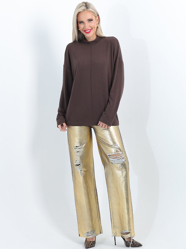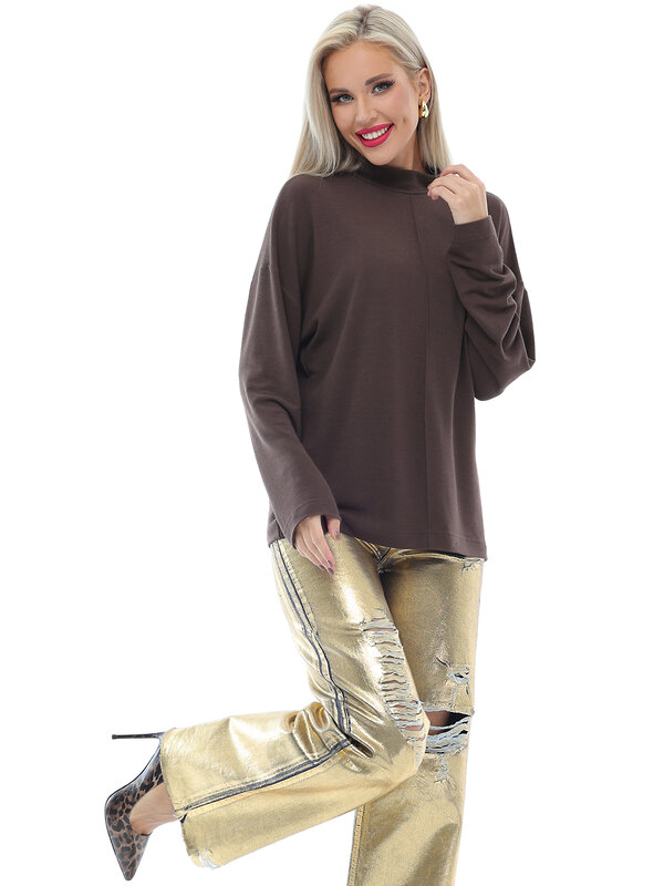 Женская удлиненная блузка в стиле оверсайз - идеальный выбор для создания модного и стильного образа. Трикотажная ткань делает его подходящим для демисезонного периода. Удлиненная модель со свободным и прямым кроем и спущенной линией плеч будет актуальна для всех фигур - как для полных и невысоких, так и высоких и стройных. Можно носить навыпуск или заправлять, подчеркнуть талию ремнем. Независимо от вашего стиля - офисной деловой формы, спорта или домашнего уюта - эта блузка закроет все ваши потребности!