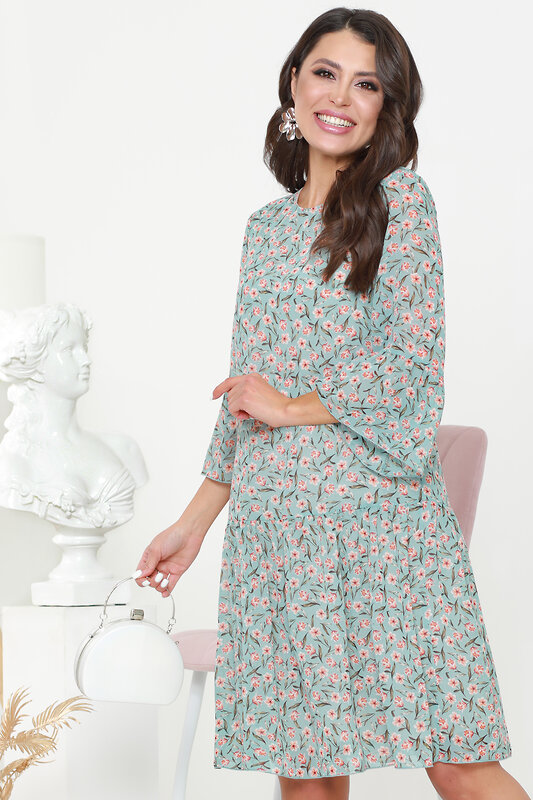 Летящие слои легкого шифона и рюши на рукавах и по подолу задают образу романтический тон. Платье свободное, легкое и воздушное, подходит любой фигуре и любой ситуации, одинаково уместно на улице, в офисе или на вечеринке.
