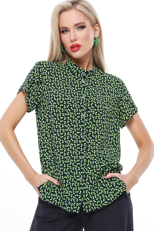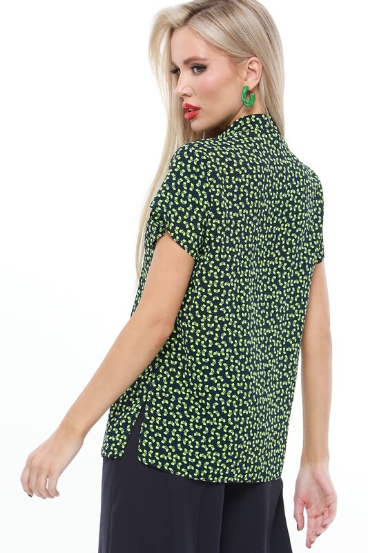 Элегантная блузка с коротким рукавом и воротничком-стойкой воплощает всю эклектику образа современной женщины: строгая планка и стойка выглядят максимально строго, по-деловому. Но все впечатление вкорне меняет силуэт рукава - это запашные «крылышки», похожие на цветочные лепестки в еще нераскрывшемся бутоне.