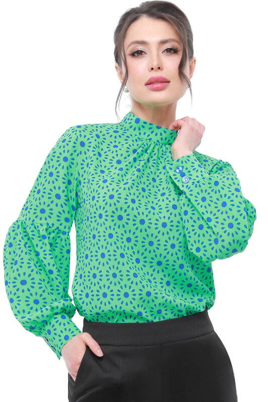 Ультрамодная блузка с необычным рукавом и воротником-стойкой украсит любой ваш образ. Рукав состоит из двух частей - прямой и «фонарика», который расположен в нижней части рукава. Это позволяет не расширять визуально плечи и при этом создать роскошный аристократический эффект объема.