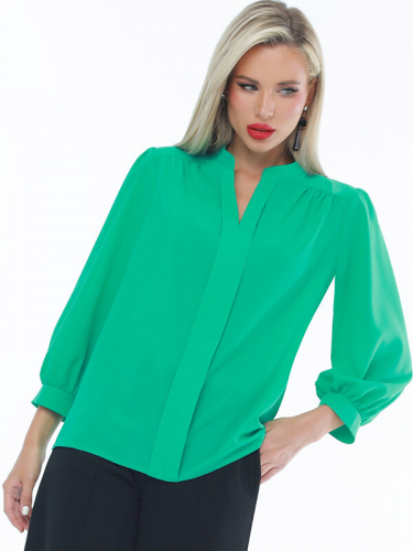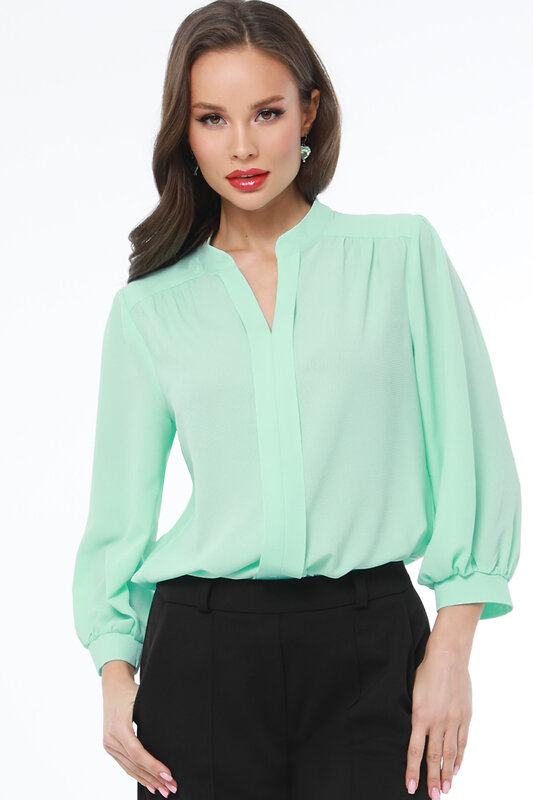 Женственная блузка на каждый день. Планки, имитирующие застежку, визуально делят фигуру и тем самым стройнят. Укороченный рукав достаточно пышный, чтобы производить впечатление. Лучше всего будут смотреться в сочетании с юбками, но также можно носить ее навыпуск с брюками, а также длина позволяет гармонично дополнить ее поясом.
