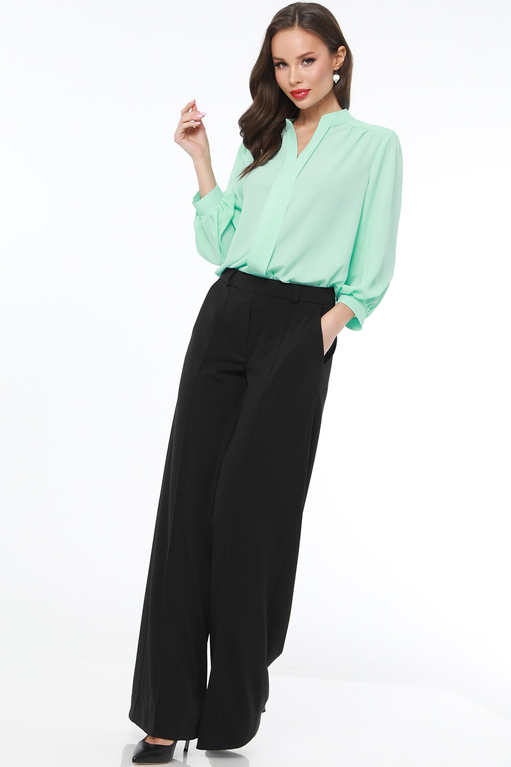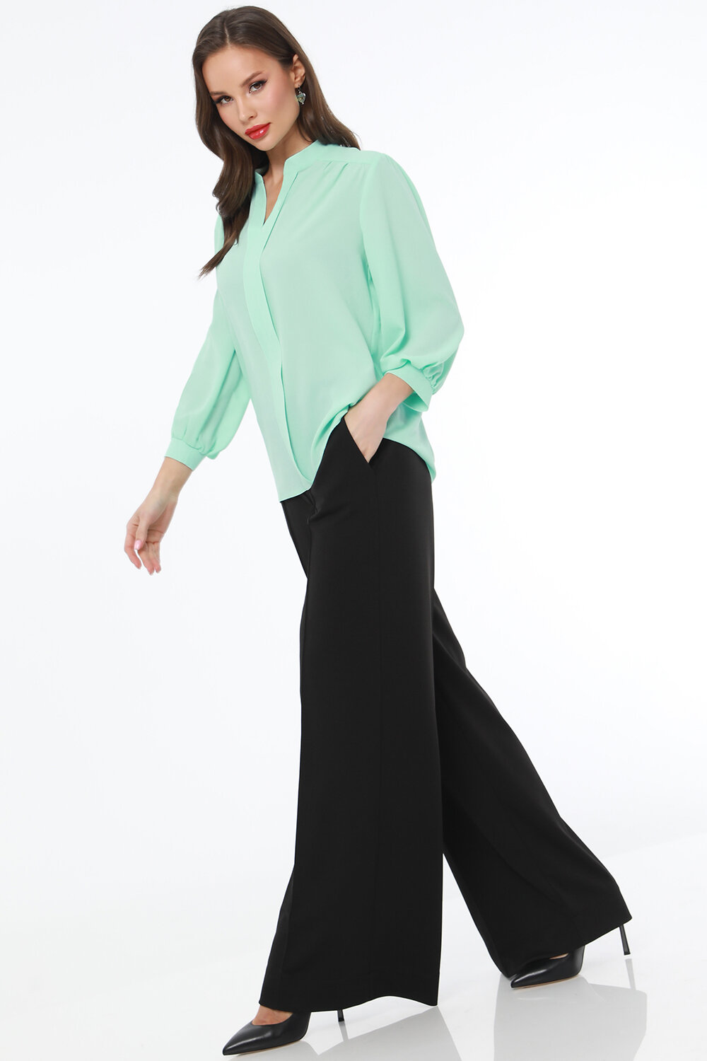 Женственная блузка на каждый день. Планки, имитирующие застежку, визуально делят фигуру и тем самым стройнят. Укороченный рукав достаточно пышный, чтобы производить впечатление. Лучше всего будут смотреться в сочетании с юбками, но также можно носить ее навыпуск с брюками, а также длина позволяет гармонично дополнить ее поясом.