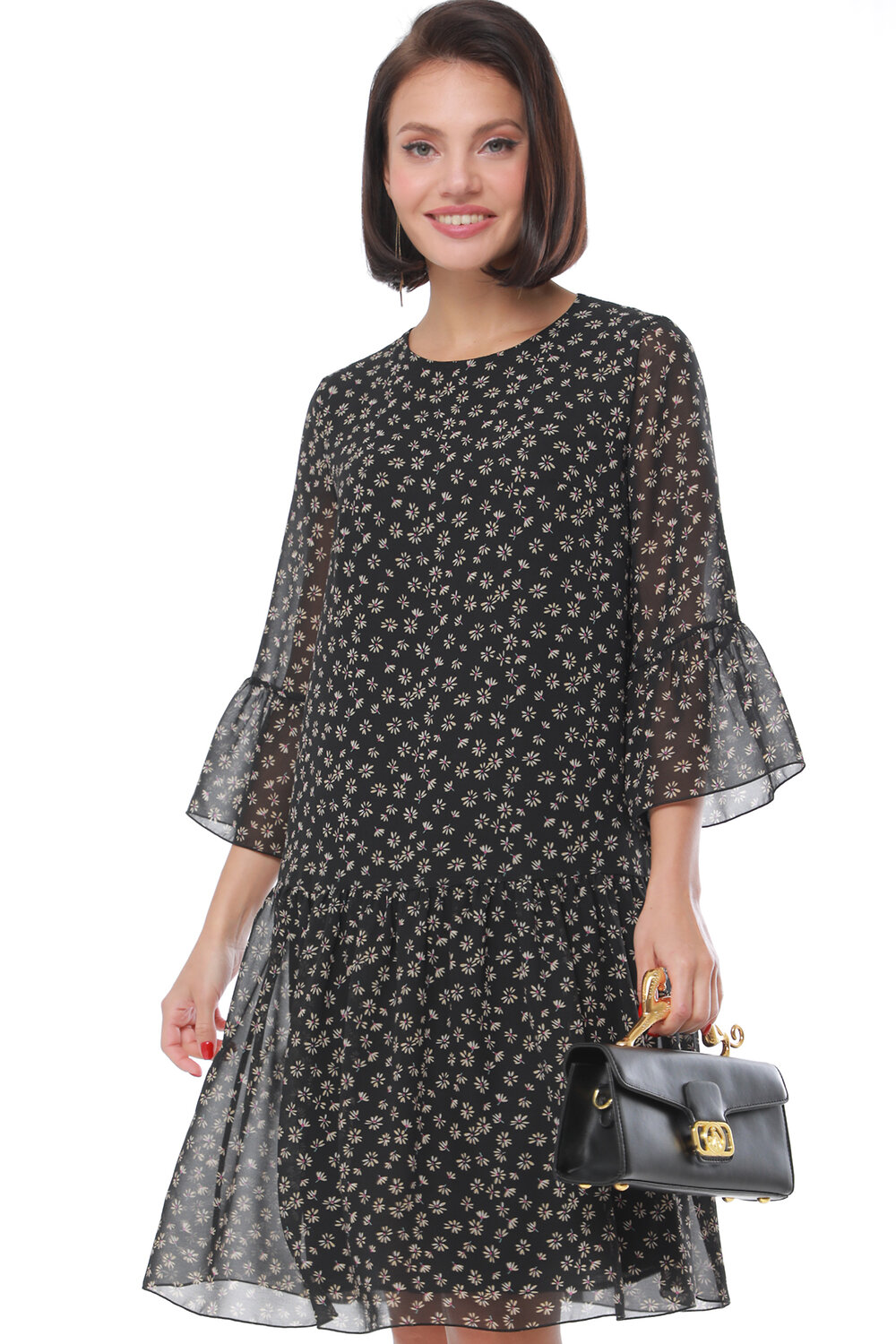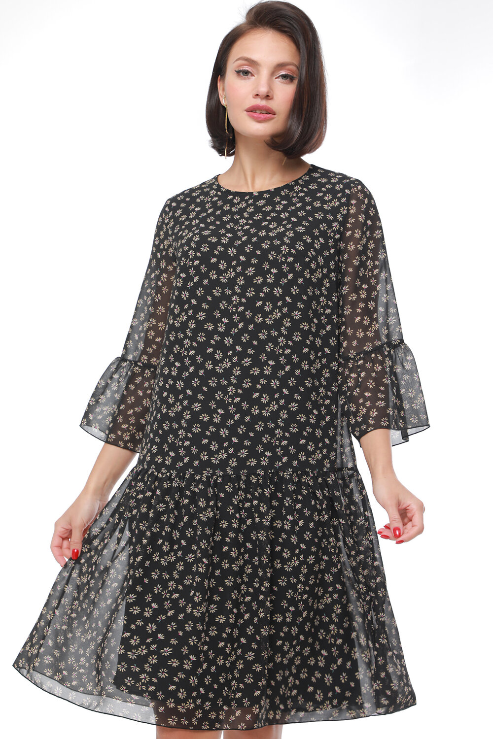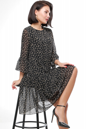 Летящие слои легкого шифона и рюши на рукавах и по подолу задают образу романтический тон. Платье свободное, легкое и воздушное, подходит любой фигуре и любой ситуации, одинаково уместно на улице, в офисе или на вечеринке.