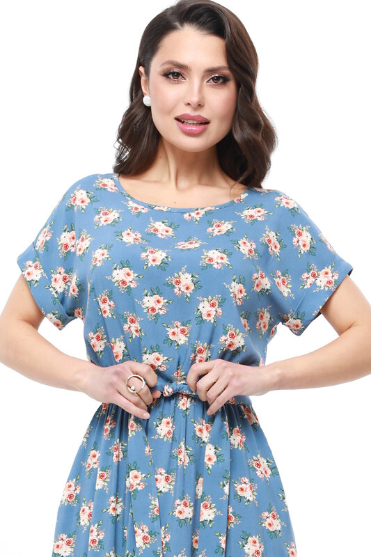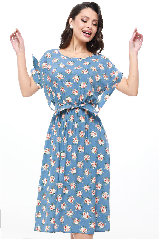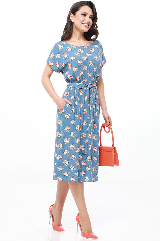 Лаконичное платье для каждого дня. Оно свободно сидит по фигуре, за счет расклешенной юбки и цельнокроеной проймы рукава. Сформировать приталенный силуэт поможет широкий пояс. Легкая натуральная вискоза, из которой сшито платье, будет комфортна в жаркую погоду.