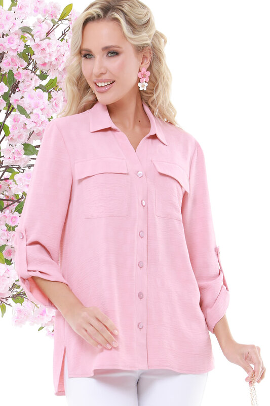 Базовая блузка на пуговицах с карманами — основа гардероба, благодаря которой можно составить стильные и элегантные образы на все случаи жизни. Свободный прямой силуэт со слегка удлиненной спинкой и разрезами по бокам не подчеркивает нюансы фигуры и позволяет чувствовать себя комфортно. Особый шарм и утонченность придают блузке рукава ¾, собранные патами. Два нагрудных кармана функциональны и добавляют образу расслабленные нотки. Стильную блузку можно носить как навыпуск, так и заправленной полностью или только спереди, чтобы создать акцент на талии и визуально удлинить ноги. А сочетать модель с другими элементами гардероба не составит труда. Универсальная блузка прекрасно смотрится в паре с джинсами, брюками и юбками различных фасонов. Рекомендуется стирать изделие в бережном режиме без отжима.