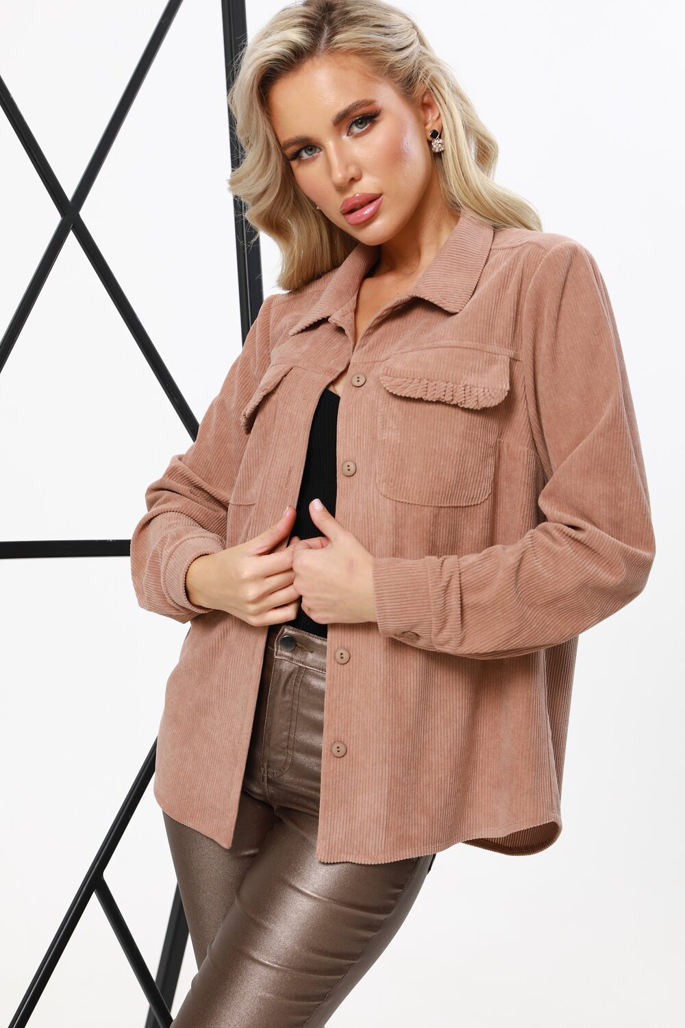 Вельветовая рубашка с акцентными карманами — универсальная вещь, которая поможет создать множество модных образов как на каждый день, так и в офис. Отложной воротничок, лаконичные пуговицы в тон, длинные рукава с манжетами и стандартная длина приближают модель к классической, элегантной сорочке, что позволяет без труда вписать ее в гардероб. Отличительная черта рубашки это не только приятный на ощупь микровельвет, но и накладные карманы, которые украшены рюшами. Эта изюминка придает изделию женственные, игривые нотки и делает ее более нарядной. Теплую, удобную рубашку можно носить как в качестве самостоятельного элемента гардероба, так и в виде верхнего слоя — наподобие куртки или жакета. В обоих случаях модель из вельвета будет выглядеть дорого и стильно. Качественный, плотный и мягкий материал хорошо сохраняет тело и дарит ощущение уюта. Рекомендуем стирать в деликатном режиме.