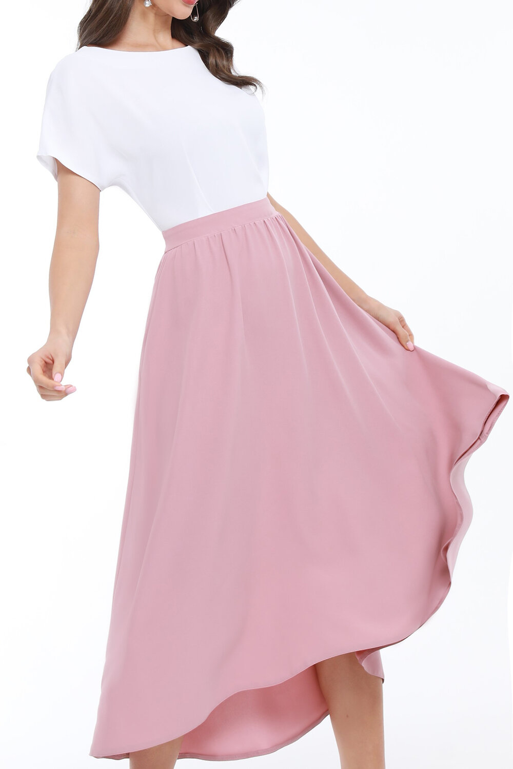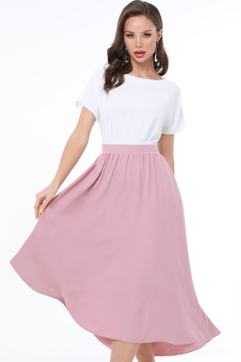 Платье с удлинённой юбкой, идеально подходящее для летнего сезона. Это платье изготовлено из плательной ткани, которая обеспечивает комфорт и стиль в жаркие летние дни. Округлый вырез горловины придает платью утонченный и женственный вид, подчеркивая шею и создавая элегантный силуэт. Этот вырез подходит для различных типов фигуры и добавляет наряду изысканности. Модель платья выполнена в полуприлегающем силуэте, что подчеркивает женственные формы, не сковывая движения. Застежка на молнии обеспечивает легкость надевания и снятия платья. Молния размещена таким образом, чтобы быть практически незаметной, что сохраняет цельность и элегантность общего вида. Короткие рукава добавляют платью легкости и воздушности, делая его идеальным выбором для летних прогулок и повседневного ношения. Уход за платьем не требует особых усилий: достаточно бережной стирки при 30 градусах, чтобы сохранить его цвет и форму на долгое время.