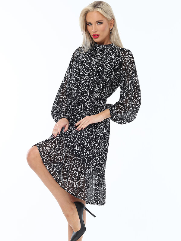 Богемное платье с рукавом реглан и воротничком-стойкой выполнено из шифона с подкладом. За счет свободного силуэта с поясом и воланом по низу юбки платье получает мягкие свободные формы, что выглядит очень романтично. Рукава присобраны на тоненький манжет. Застежка платья на пуговицах. Абсолютно самодостаточная вещь, и в пир, и в мир.