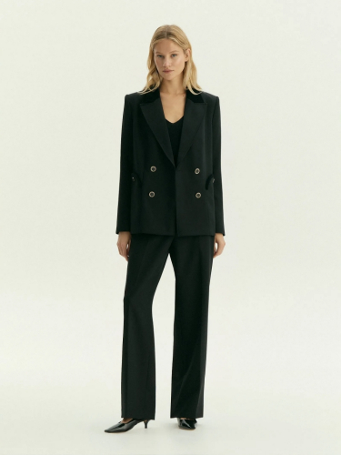 Двубортный жакет с необработанным краем , 63% полиэстер, 34% вискоза, 3% эластан ,