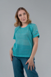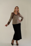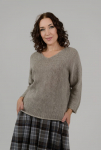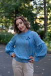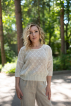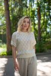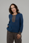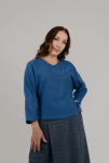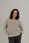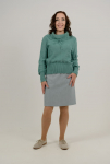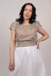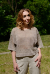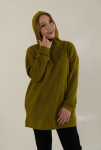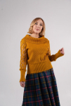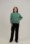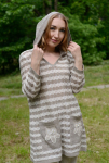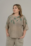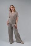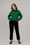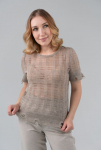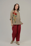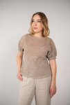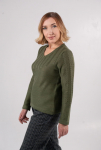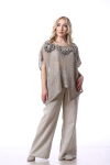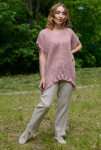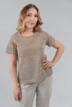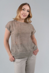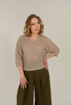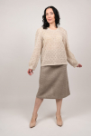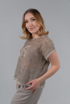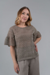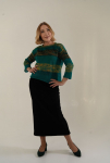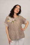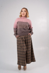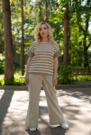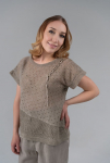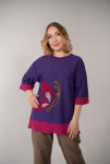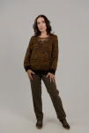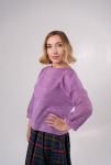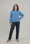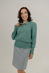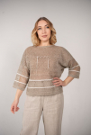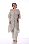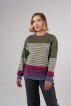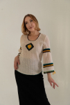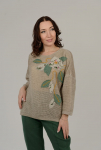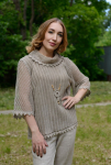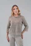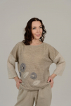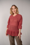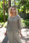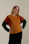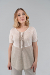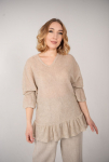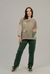 Описание: Джемпер с длинным рукавом на манжете, по бокам разрезы, вставка и манжеты из ткани лен, трикотаж.
