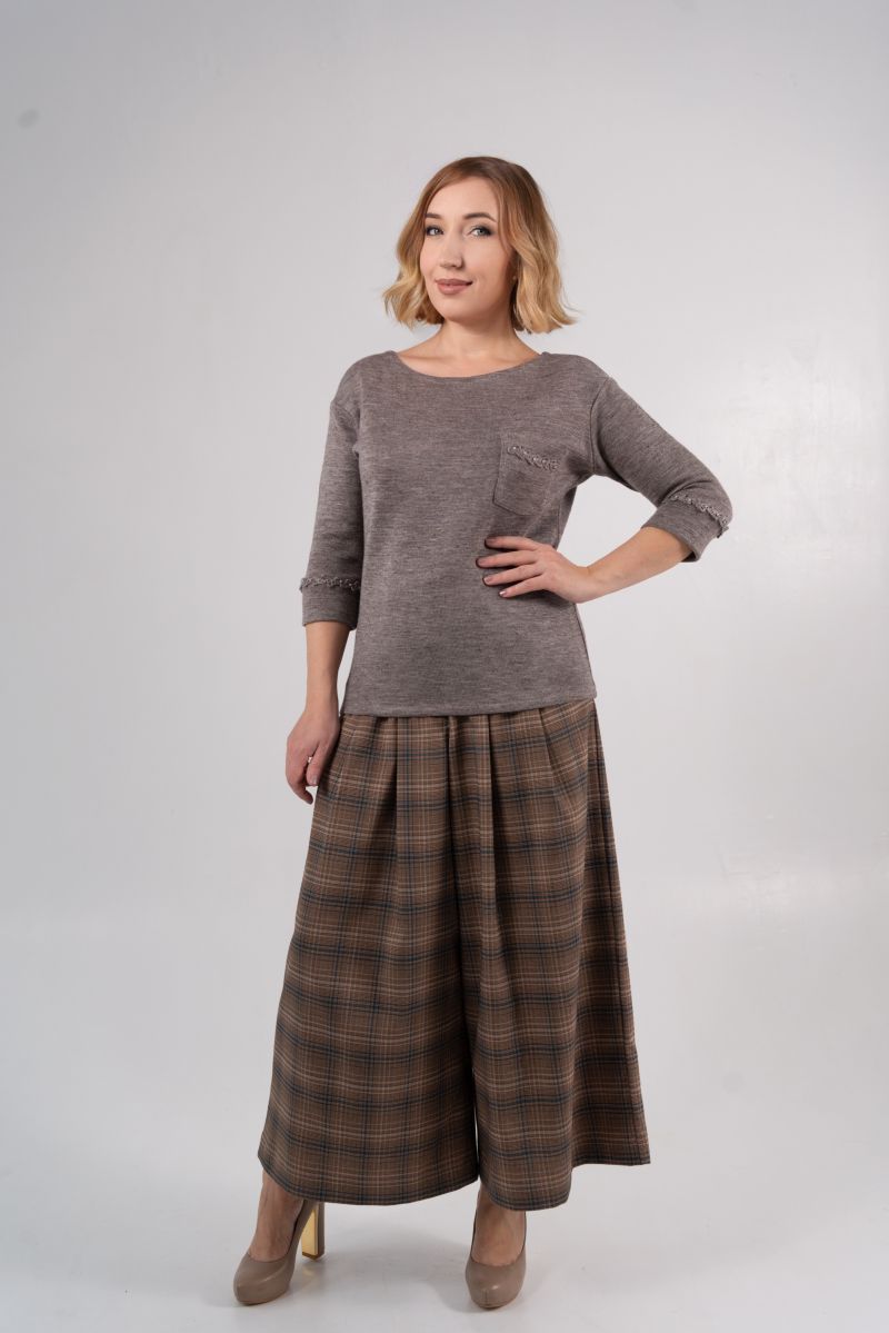 Описание: Джемпер, рукав длина 3/4, карман, отделка, трикотаж,