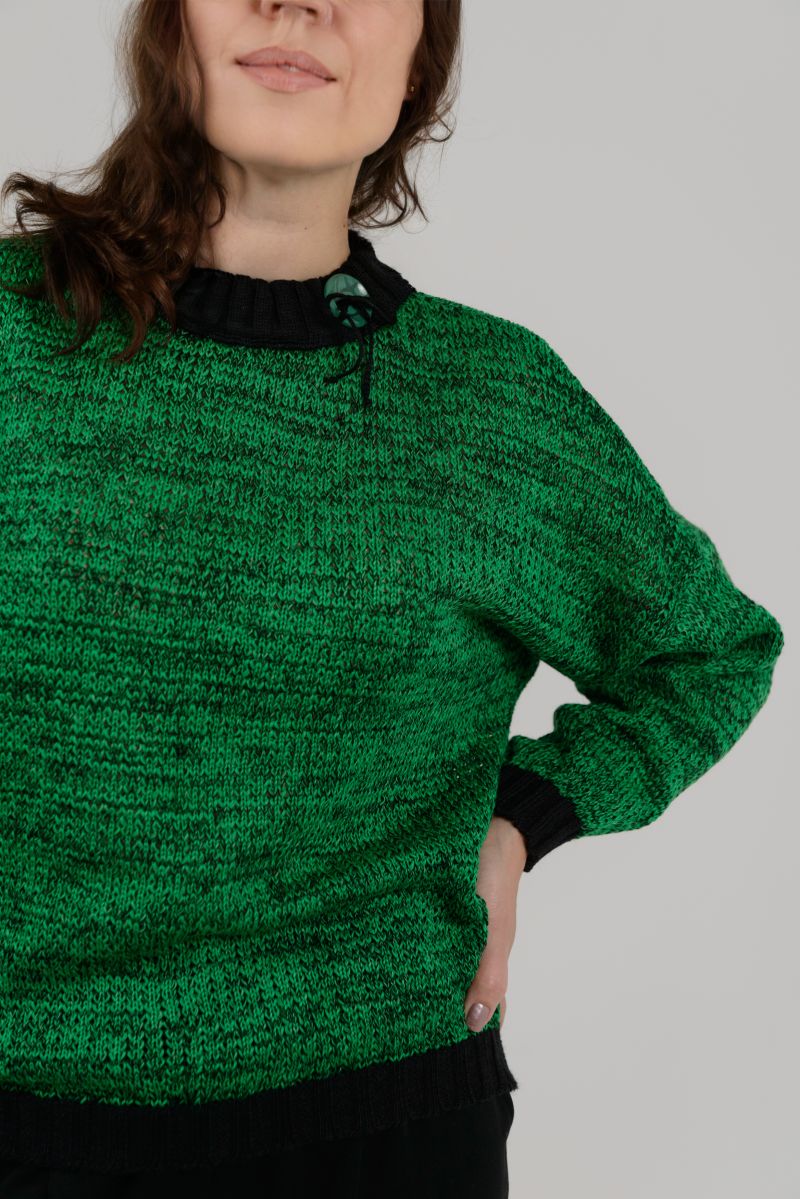 Описание: Джемпер с длинным рукавом, линия плеча спущена, трикотаж, внизу резина.