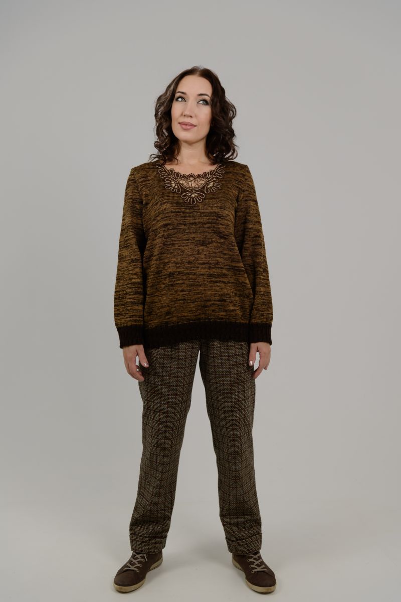Описание: Джемпер с кружевом, длинный рукав, трикотаж меланж, внизу резина.